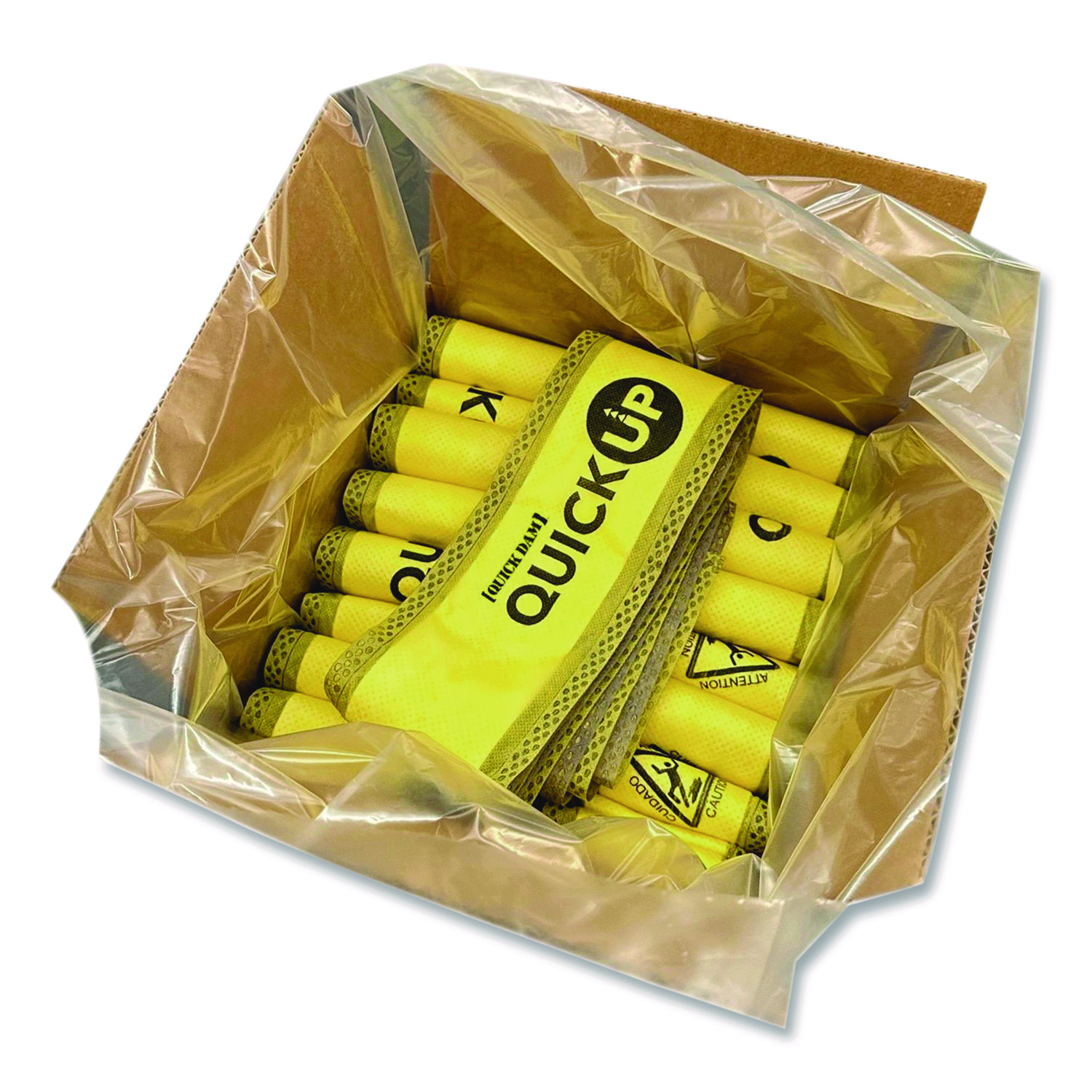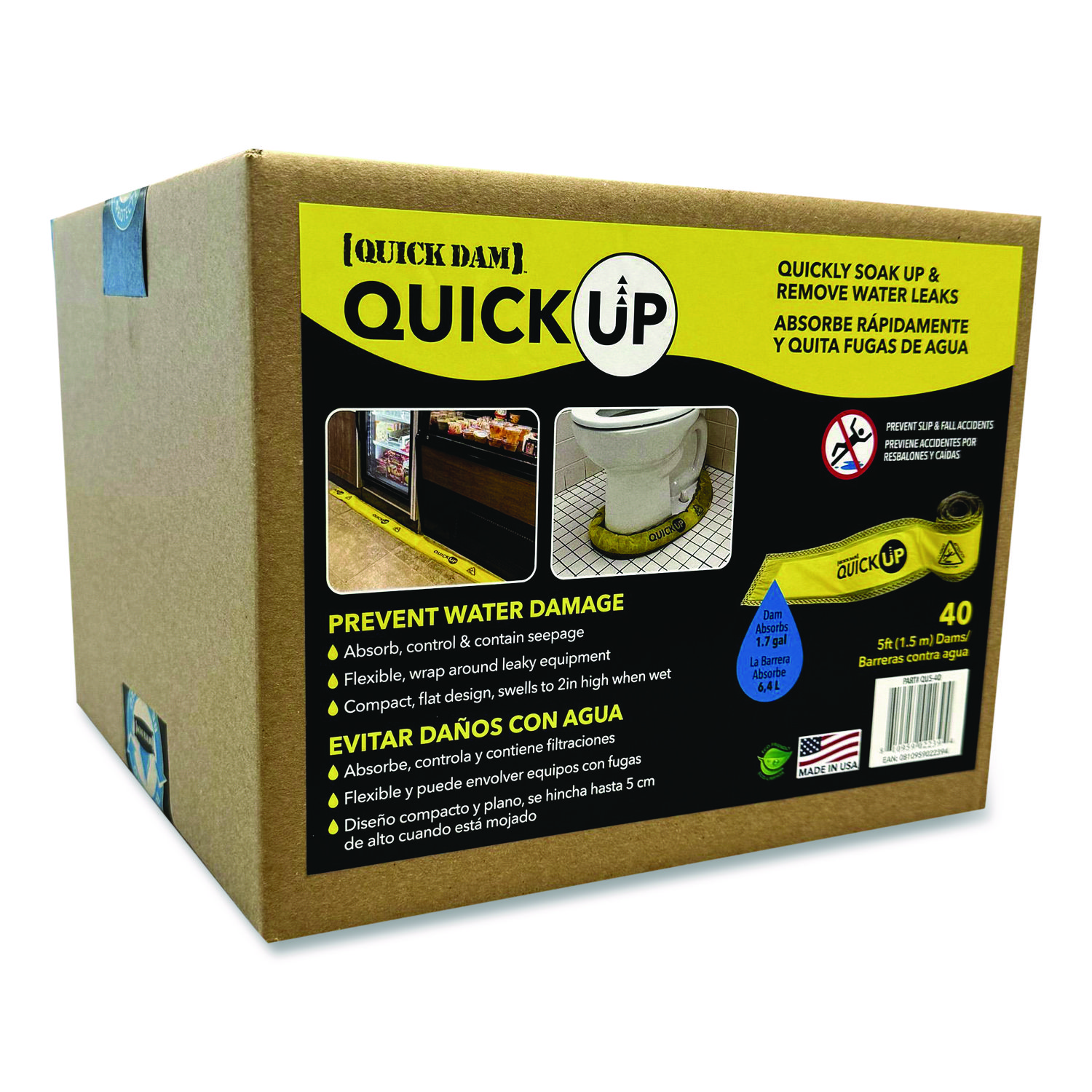 Protect your property and minimize water damage with Quick Dam super absorbent Quick Ups. Quick Ups can be used for condensation build up, water-based spills, leaking and overflowing appliances or anywhere you need protection against water problems. Height: 2″; Length: 5 ft; Width: 4″; Color(s): Yellow.