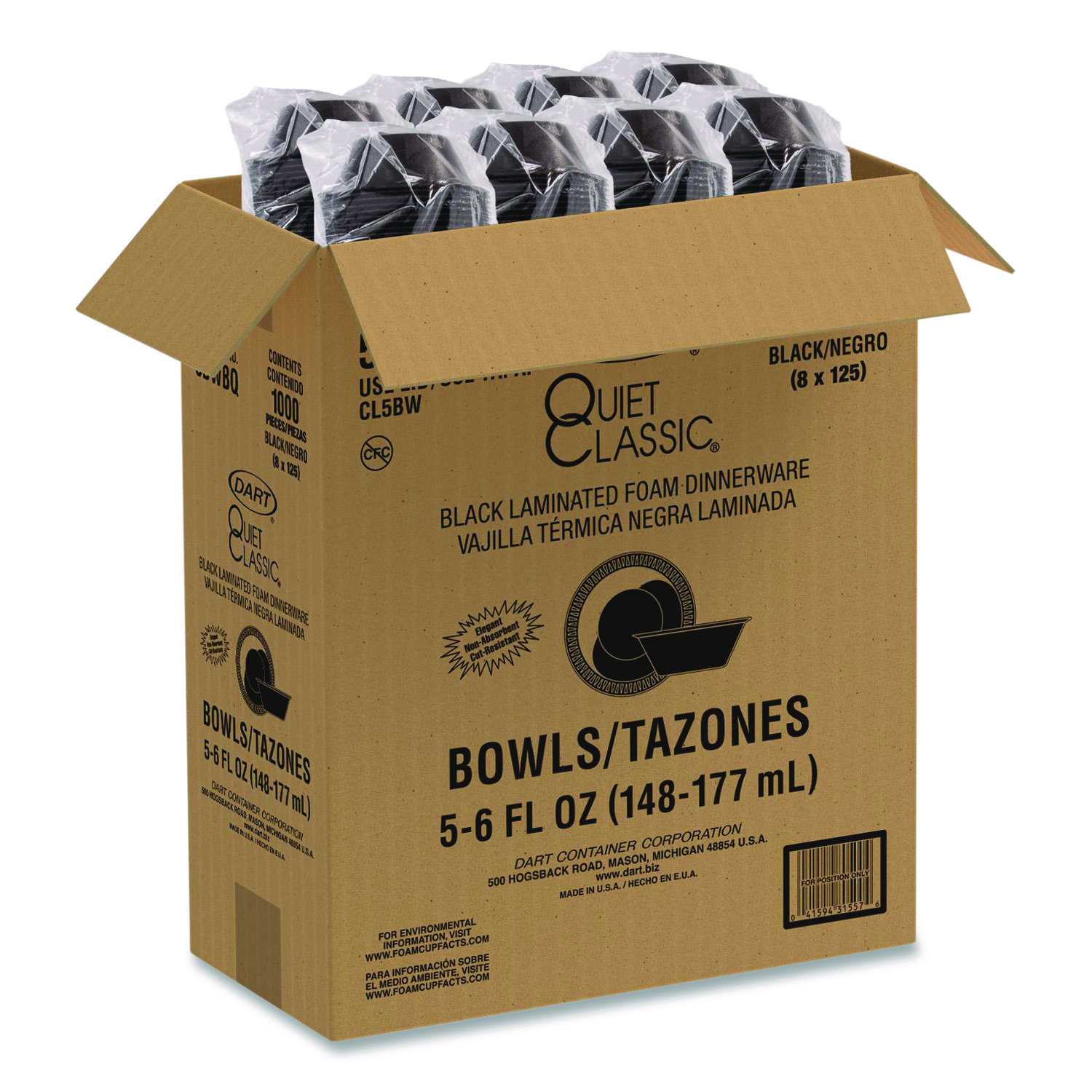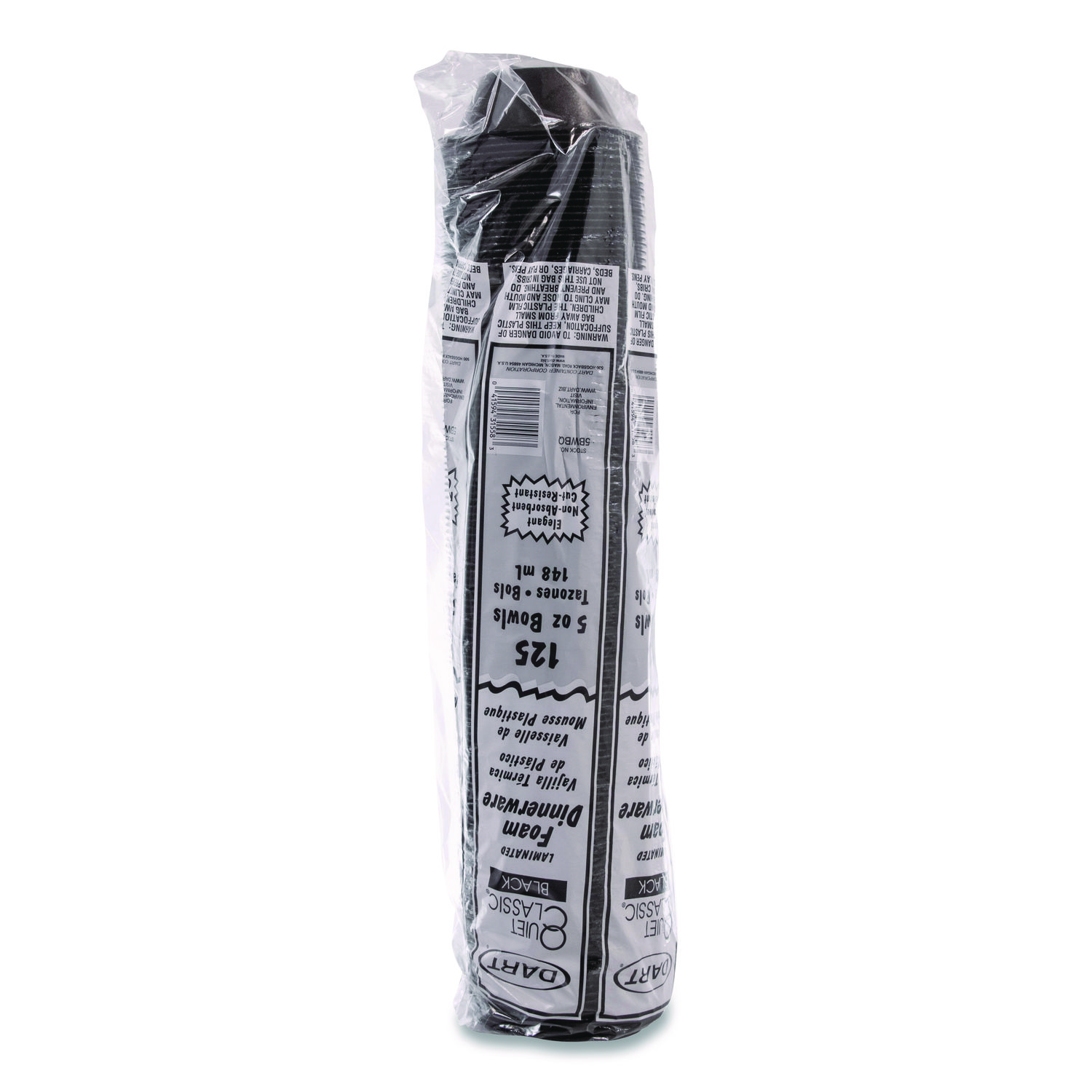 Quiet Classic Laminated Foam Dinnerware, Bowl, 5 oz, Black, 125/Sleeve, 8 Sleeves/Carton
