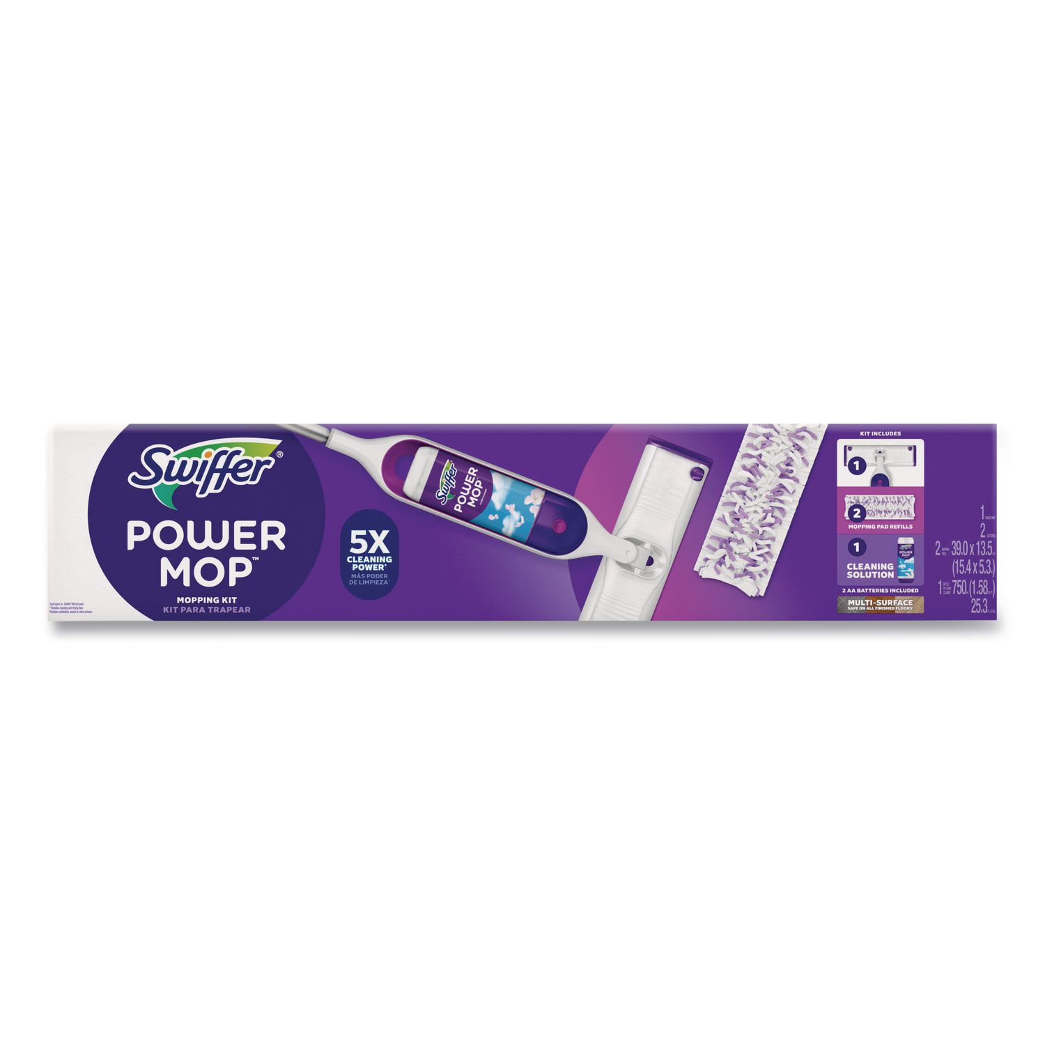 Package Includes: PowerMop Spray Mop; (2) Mop Pad Refills; (1) Floor Cleaning Solution Fresh Scent; (2) Batteries