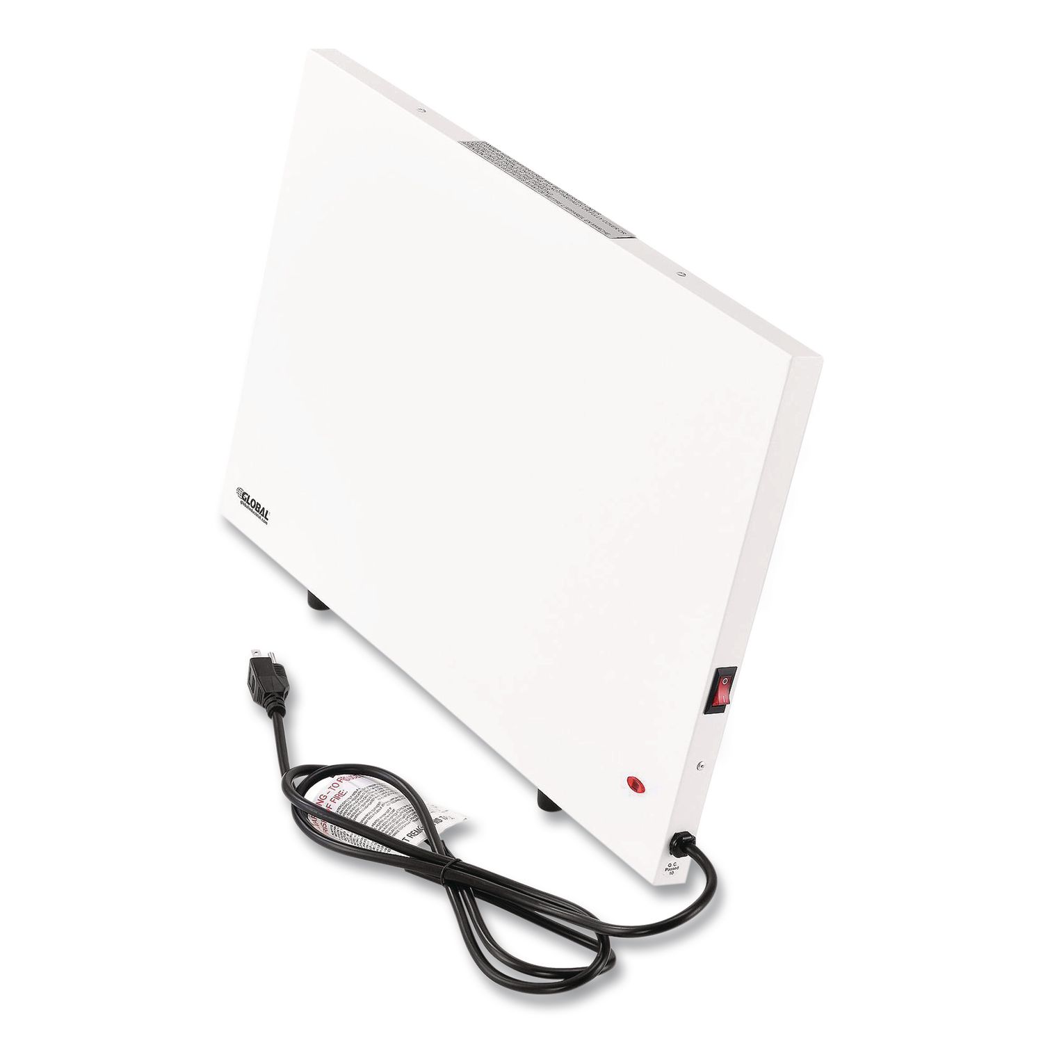 Ideal for colder work environments in need of localized heat. Compact design makes it easy to transport and store. Adjustable thermostat. Provide personalized warmth where it is needed with the Global Industrial Radiant Panel Heater. Ideal for offices, commercial and industrial work areas that can be drafty in colder temperatures, this heater includes a six-foot long cord with three-prong grounded plug and adjustable thermostat for ease of use. Heater Type: Panel Heater; Safety Features: Thermal Cut-Off Protection; Setting Range [Max]: 120 W; Oscillation: No.