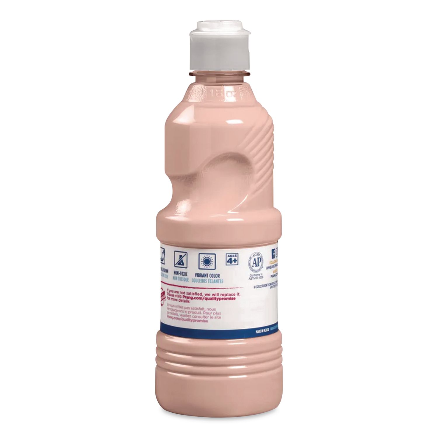 Easy-to-use paint provides a smooth texture that blends easily. Non-settling formula is ready to pour without stirring to help eliminate messes. It is a great choice for classroom use and safe for young artists. Dispenser-Cap Bottle. Paint Sub-Category: Poster Tempera; Intended Application Environment: Interior; Color(s): Peach; Color Family: Orange.