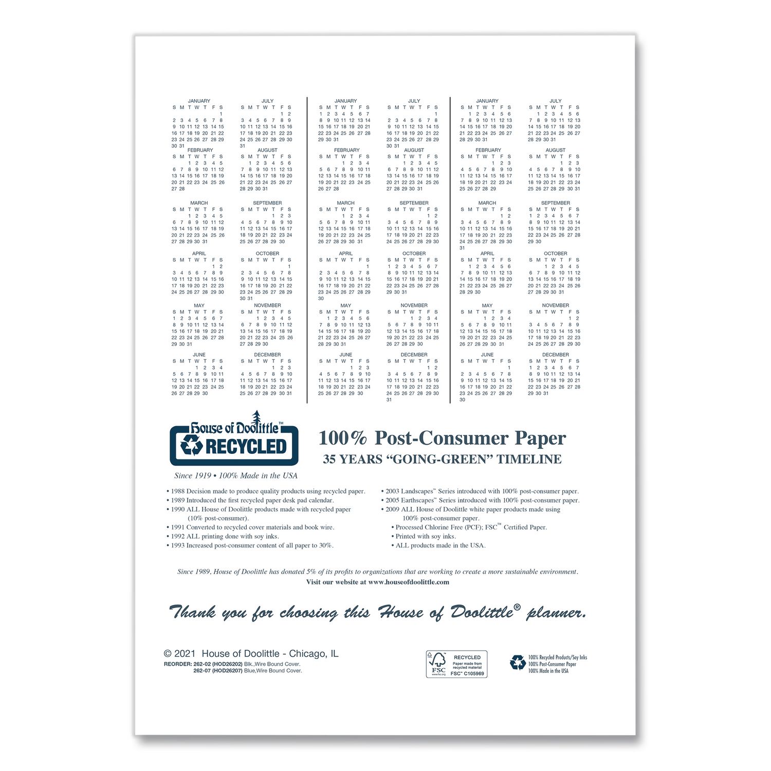| Green Information: | Cover contains 100% post-consumer recycled content; paper contains 100% post-consumer recycled content; wire contains 90% post-consumer recycled content. Printed with soy-based inks. |