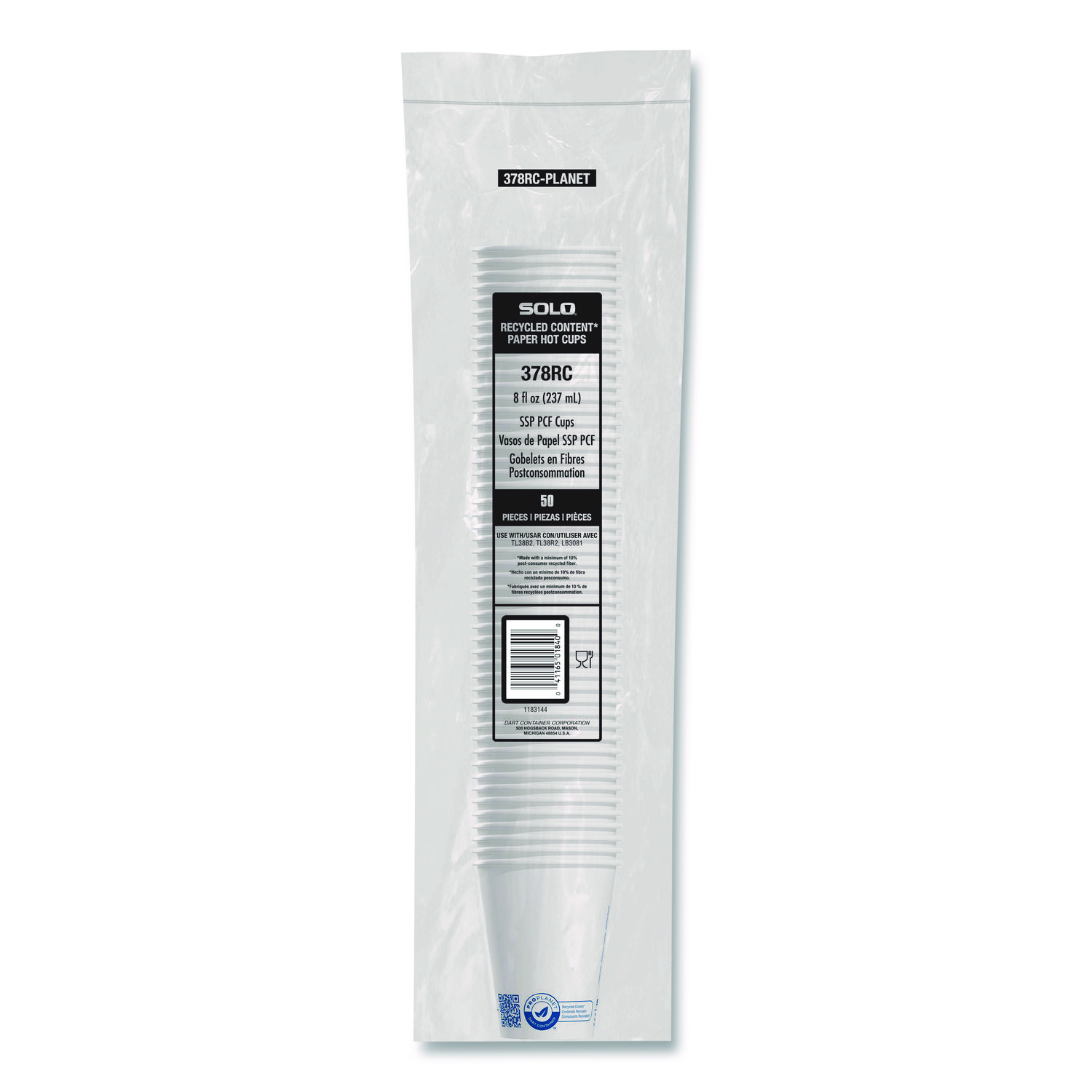 Recycled Content PCF Paper Hot Cups, ProPlanet Seal, 8 oz, White, 50/Pack