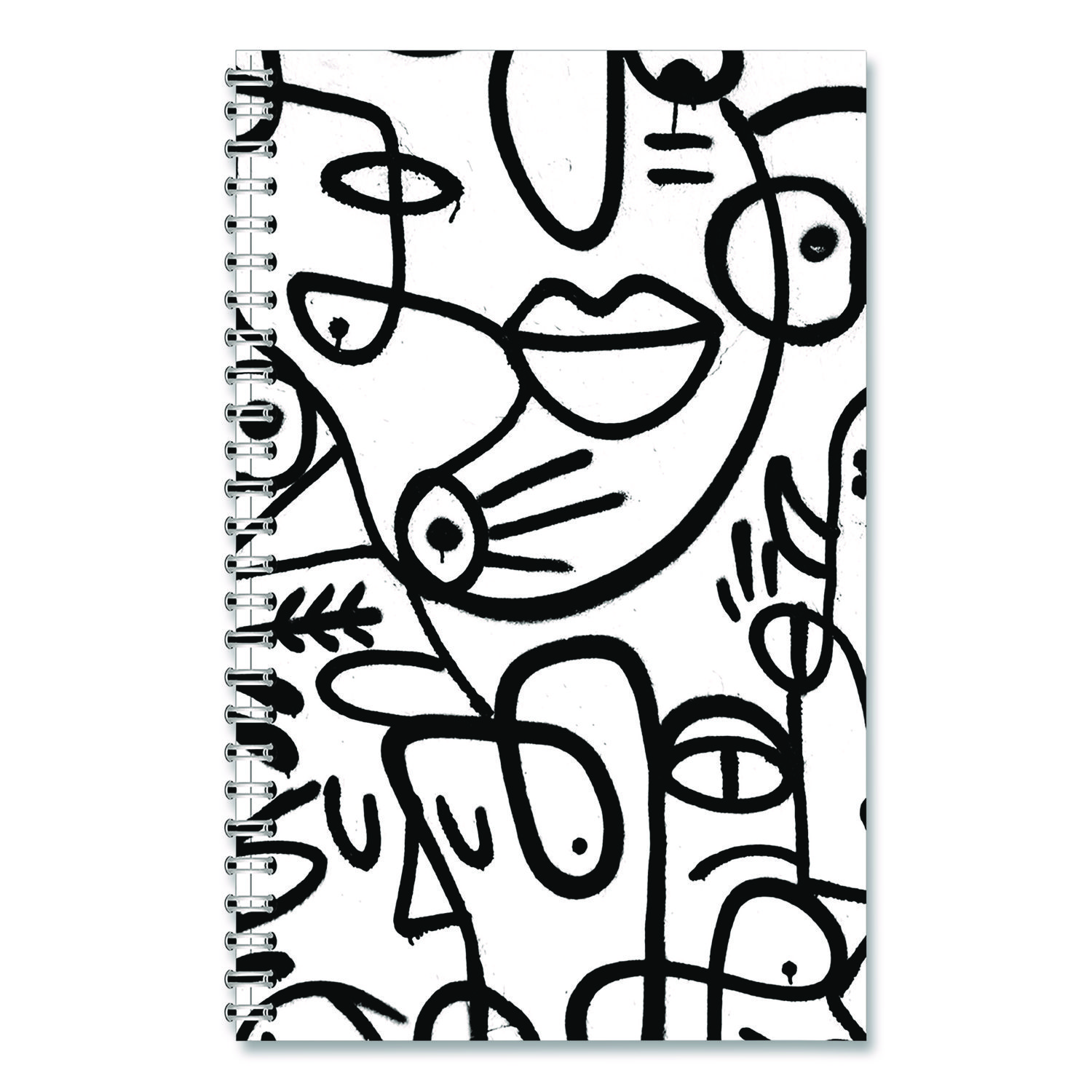 Recycled Non-Dated Monthly/Weekly Planner, Abstract Faces, Black/White Cover, Undated