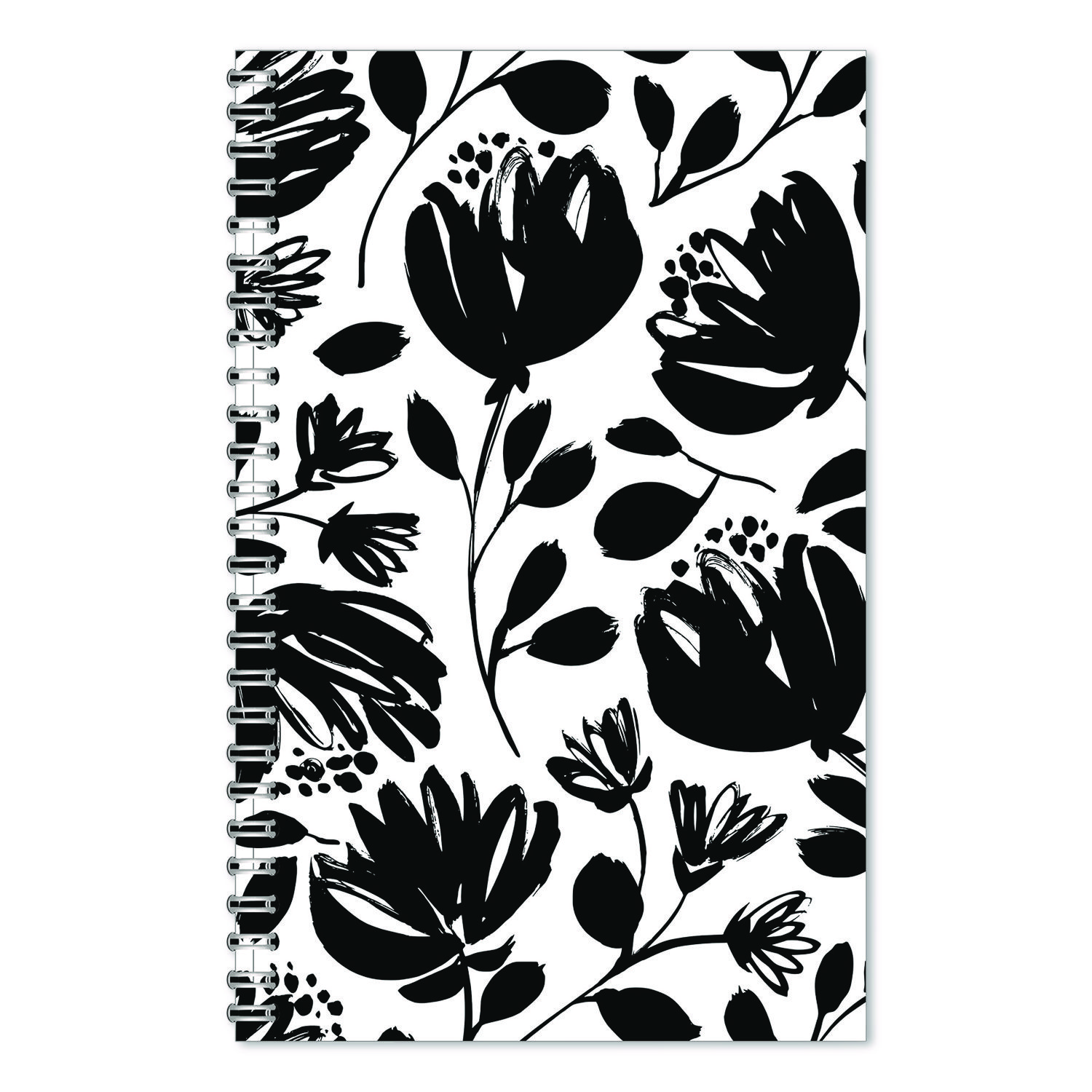 Recycled Non-Dated Monthly/Weekly Planner, Black and White Floral, Black/White Cover, Undated