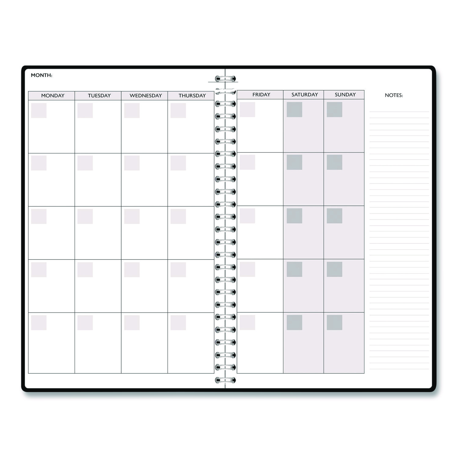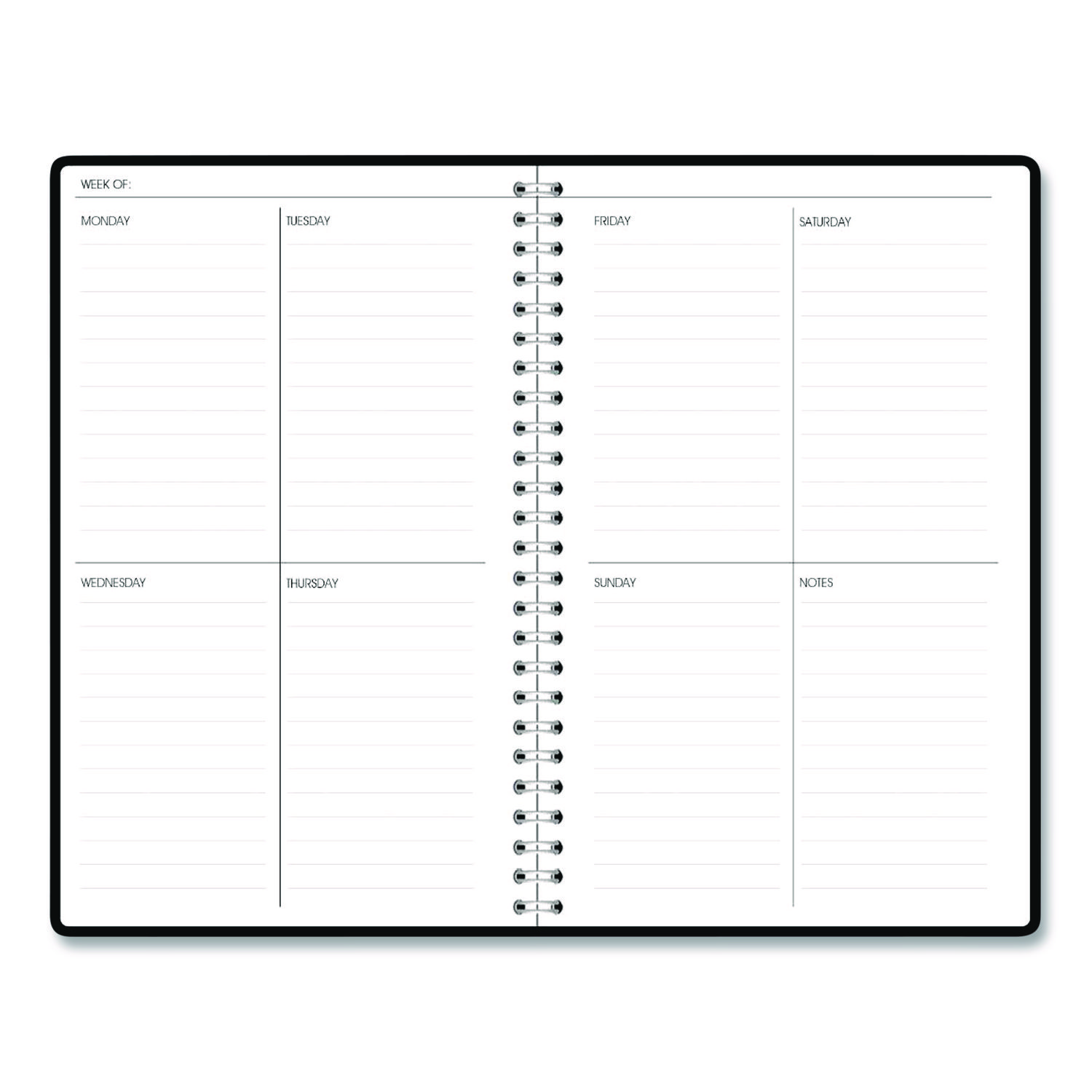 | Calendar Spread Format: | One Week per Two-Page Spread; One Month per Two-Page Spread |