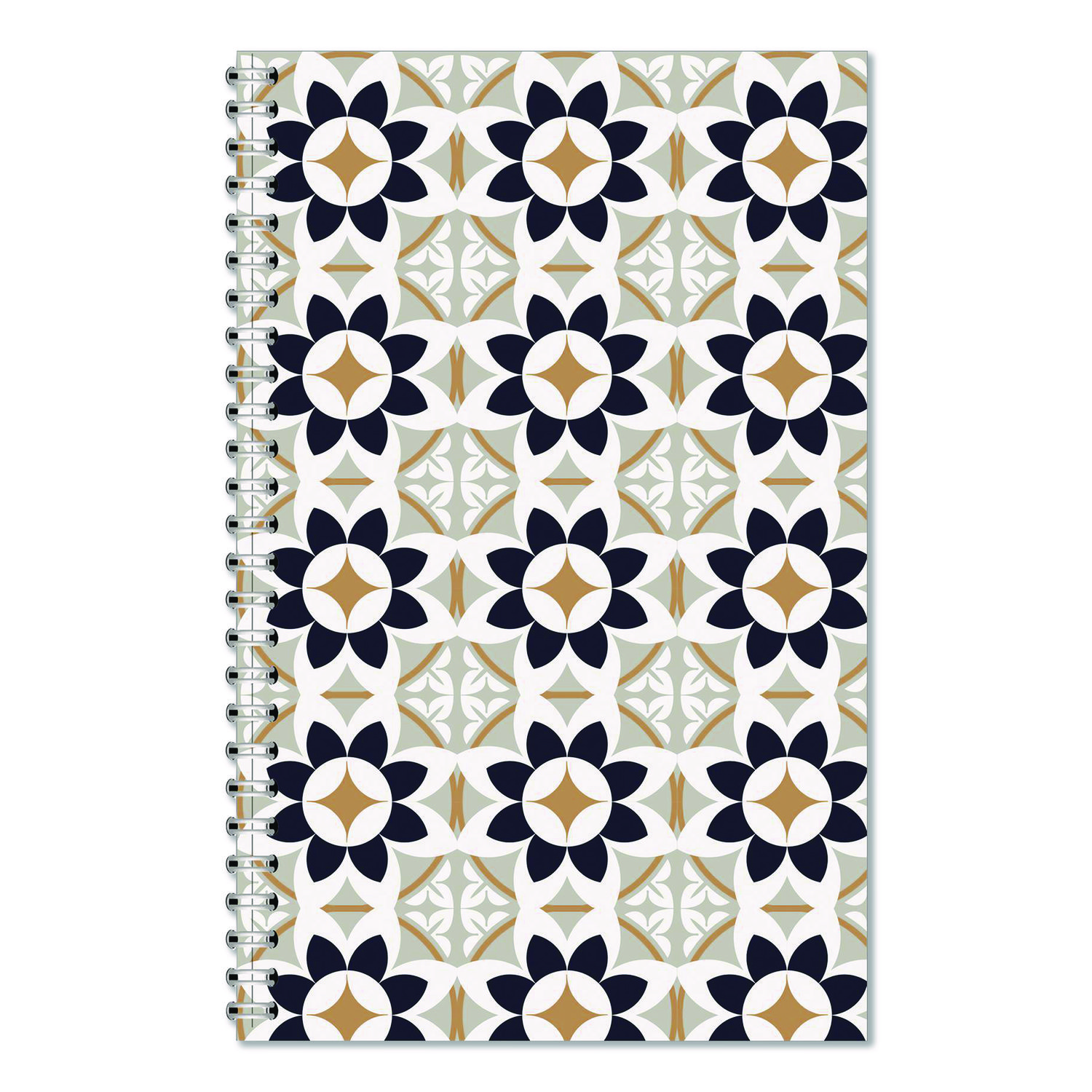 Recycled Non-Dated Monthly/Weekly Planner, Flower Tiles, Tan/Black/White Cover, Undated
