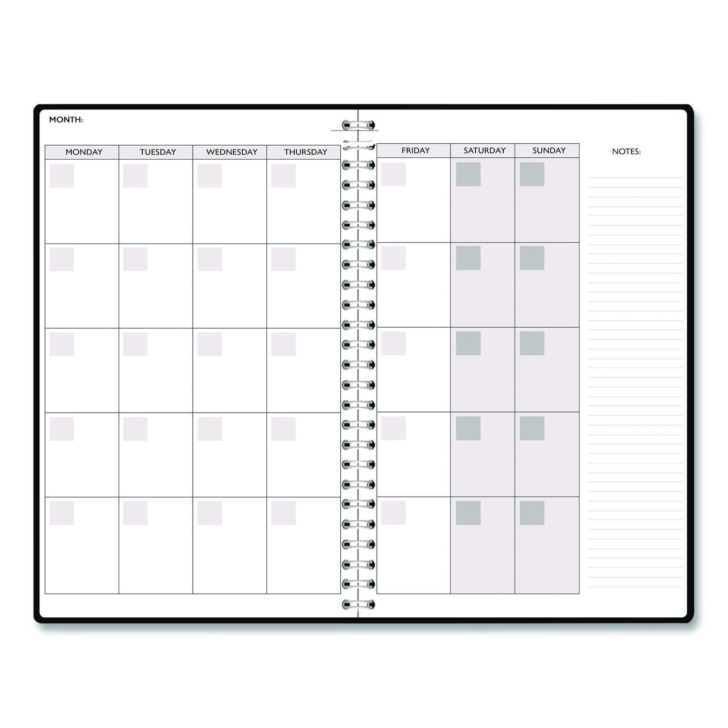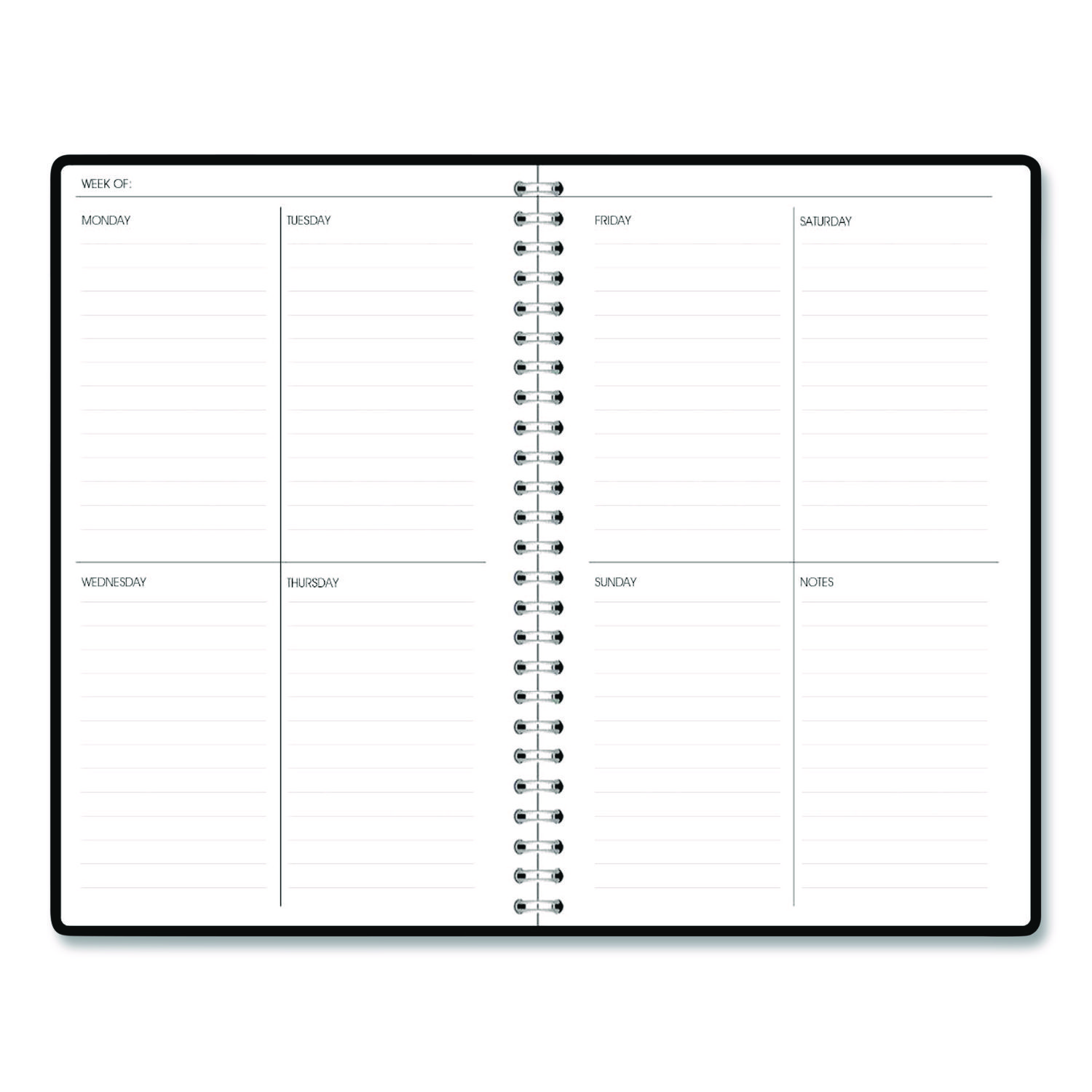 | Calendar Spread Format: | One Week per Two-Page Spread; One Month per Two-Page Spread |
