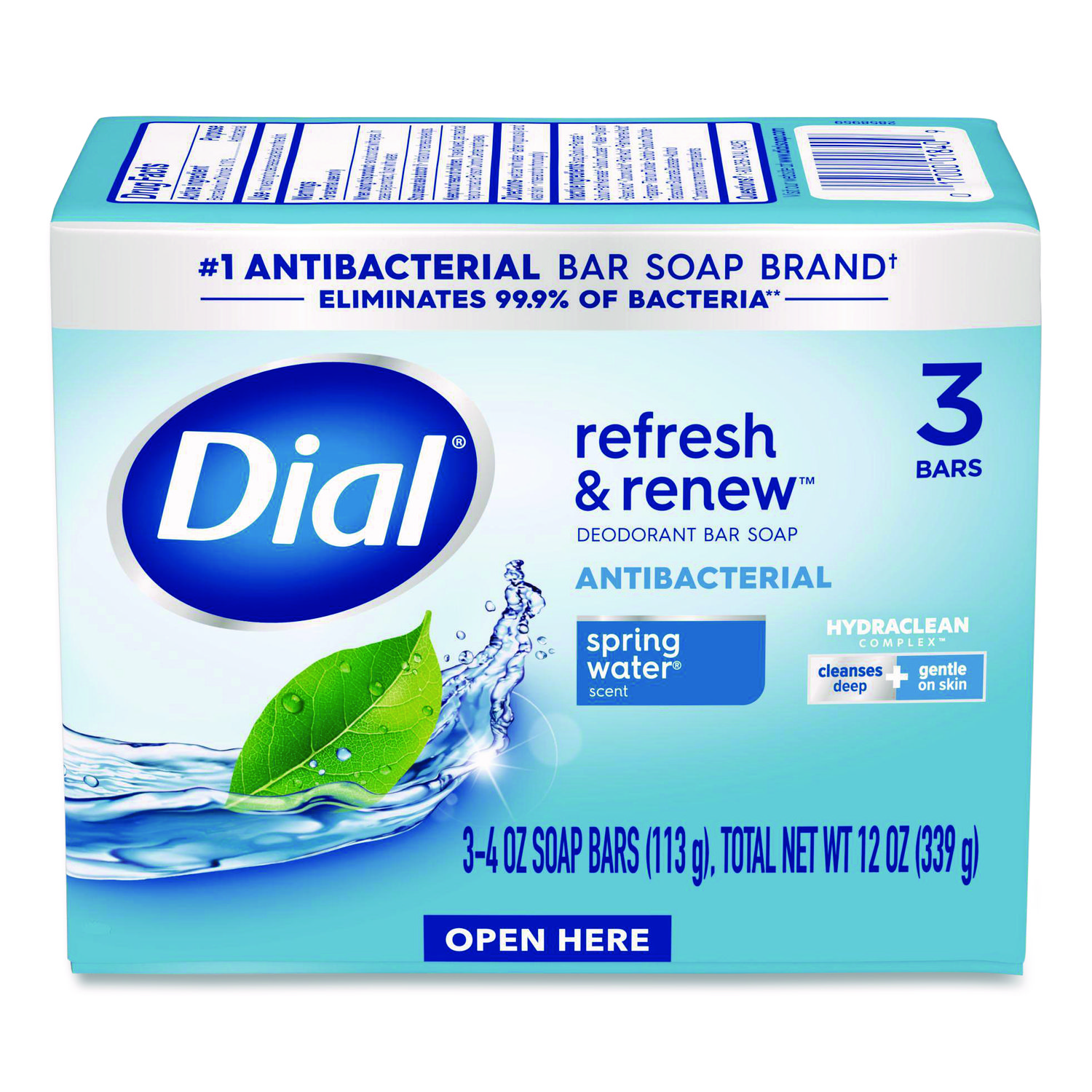 Refresh and Renew Antibacterial Deodorant Bar Soap, Spring Water Scent, 4 oz, 3 Bars/Pack, 4 Packs/Carton