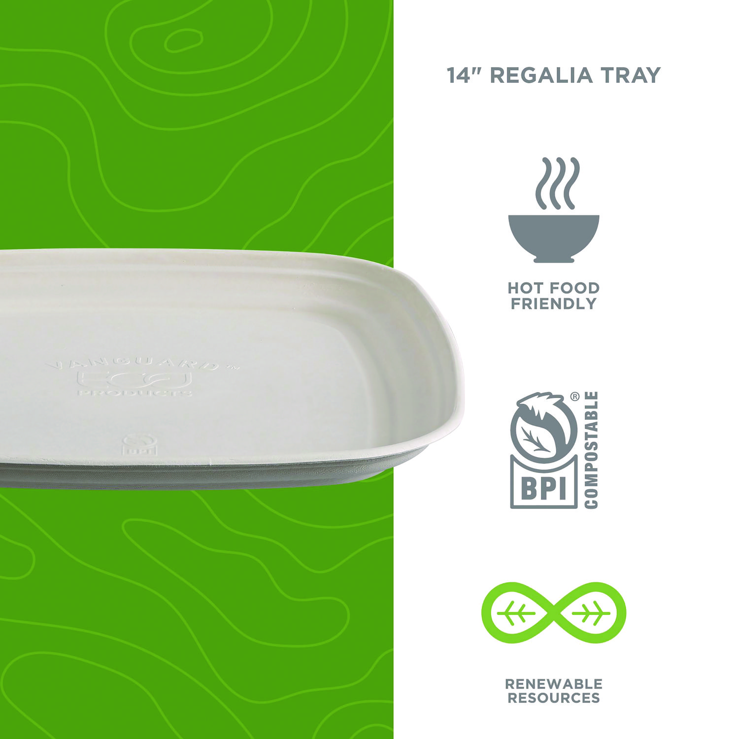 Regalia Renewable Sugarcane Tray, 9.06 x 14.37, White, Sugarcane, 100/Carton