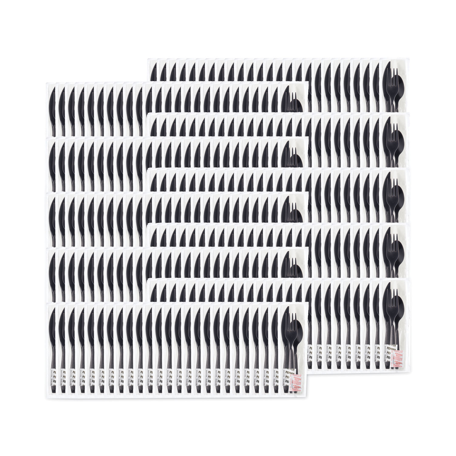 Serve customers quickly and easily with convenient, individually wrapped cutlery kits. Elegant utensils are ideal for special gatherings, casual dining or takeout/delivery. Optimized strength-to-weight ratio helps provide superior performance. All standard-length pieces feature an ergonomic grip. Six-Piece Wrapped Kit—Knife, fork, spoon, napkin, salt & pepper. Utensils Type: Fork; Knife; Napkin; Pepper; Salt; Spoon; Material Type: Plastic; Material(s): PS – Polystyrene; Color(s): Black.