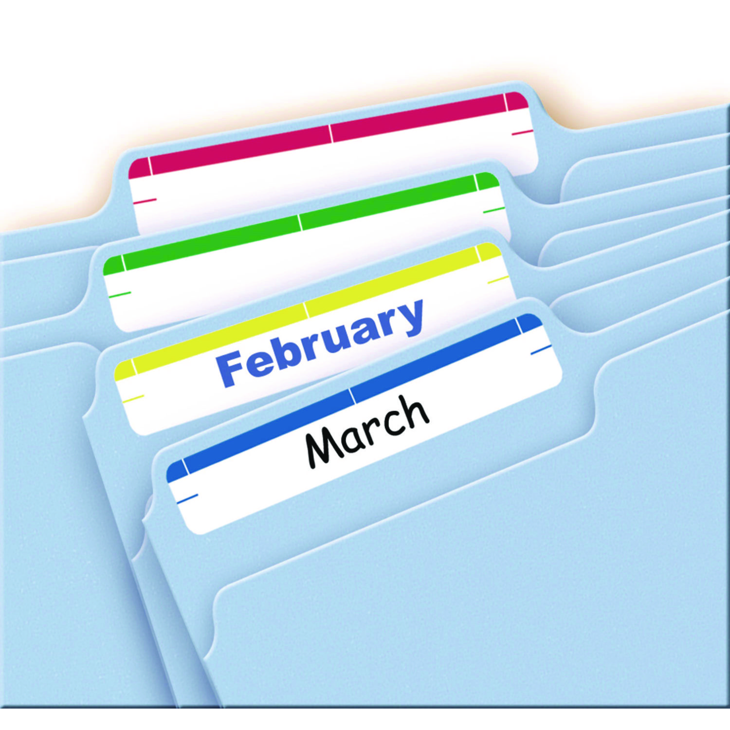 Make quick changes and reuse your file folders with our removable file folder labels. The removable adhesive helps labels stick, stay and remove cleanly when you need a change. Labels feature an eye-catching color strip at the top to make it easier to find just the folder you’re looking for. The assorted colors make them great for color coding too. Write by hand or use our free templates from Avery® Design & Print to customize and print your labels for a professional look. For a truly versatile label, it’s hard to beat these file folder labels. 1/3 Cut Top Tab—4 x 6 sheets. Shape: Rectangular; Label Size – text: 0.66 x 3.44; Label Color(s): White; Color Family: White.