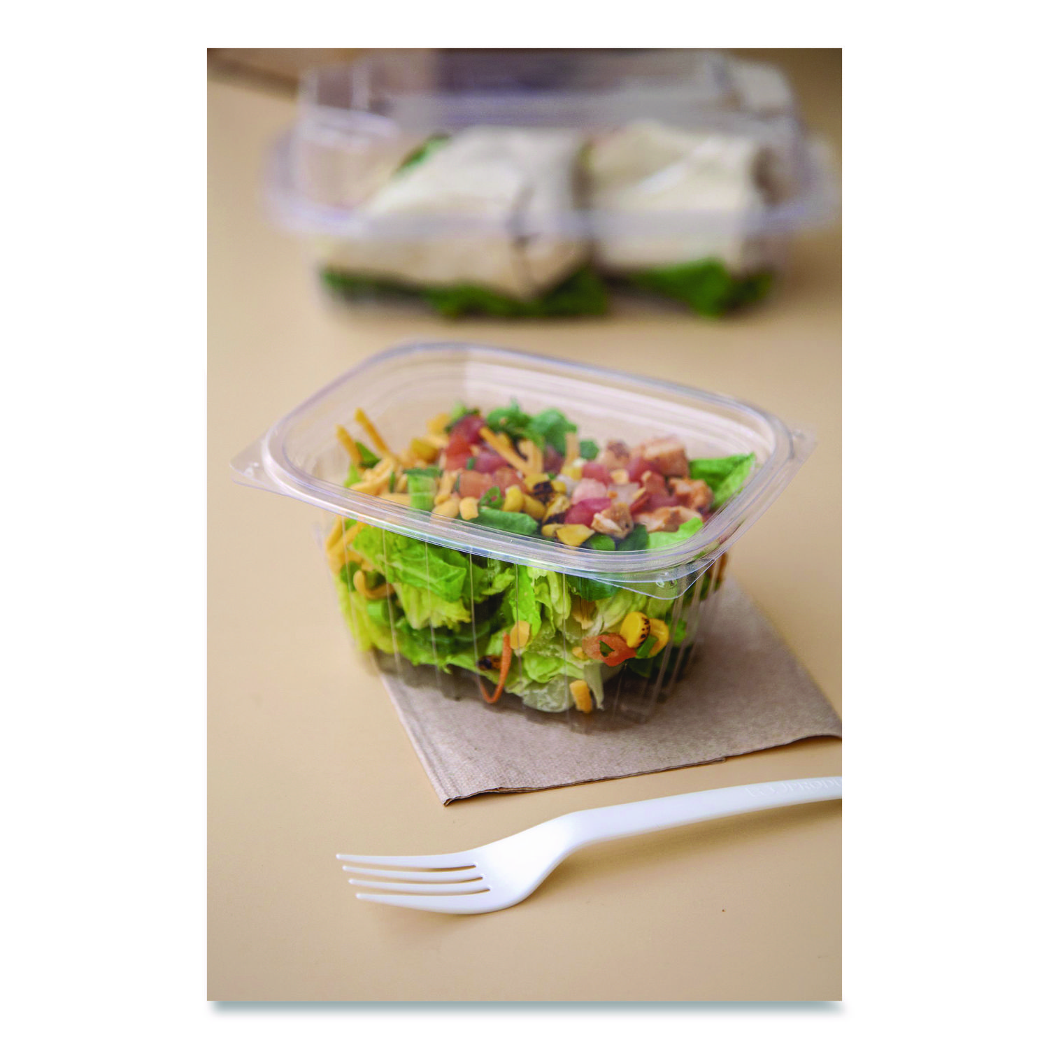These plant-based alternatives make your food look great. Send back the waste that comes with old school containers and reach for something different. Renewable and compostable PLA is just as clear as your mom’s plastic, so you’ve got a great option for your Grab ‘n Go needs. Remember though, PLA only works for cold foods, so think recycled content if the goods are hot! Made with PLA, a plant-based renewable resource type of plastic and meet ASTM standards for composability. Being clear, they’re great for displaying cold your favorite cold foods. Engineered for strength and stackability. Lids included. Food Container Type: Base/Lid Combo; Material(s): PLA; Material Type: Plastic; Interior Volume Capacity: 16 oz.