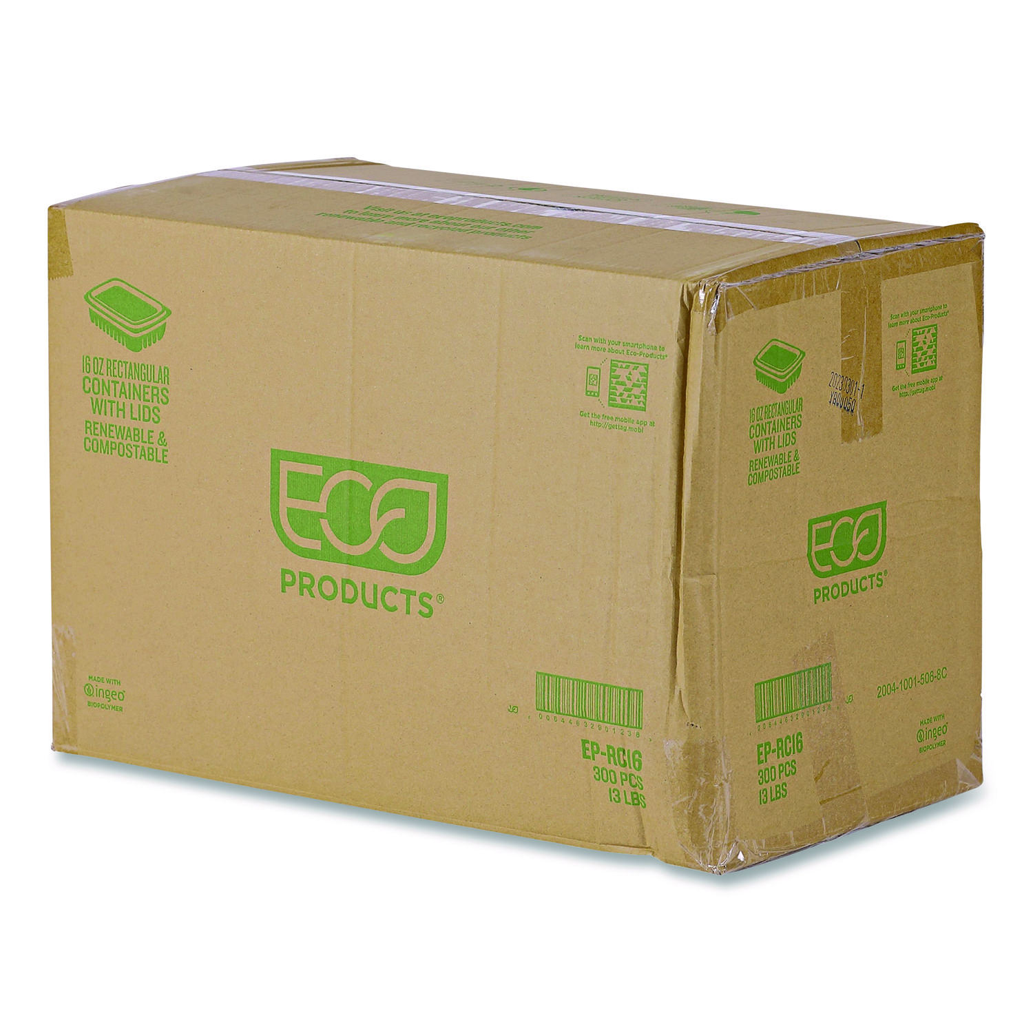 Renewable and Compostable Rectangular Deli Containers with Lid, 16 oz, 3 x 4 x 3, Clear, Plastic, 100/Pack, 3 Packs/Carton