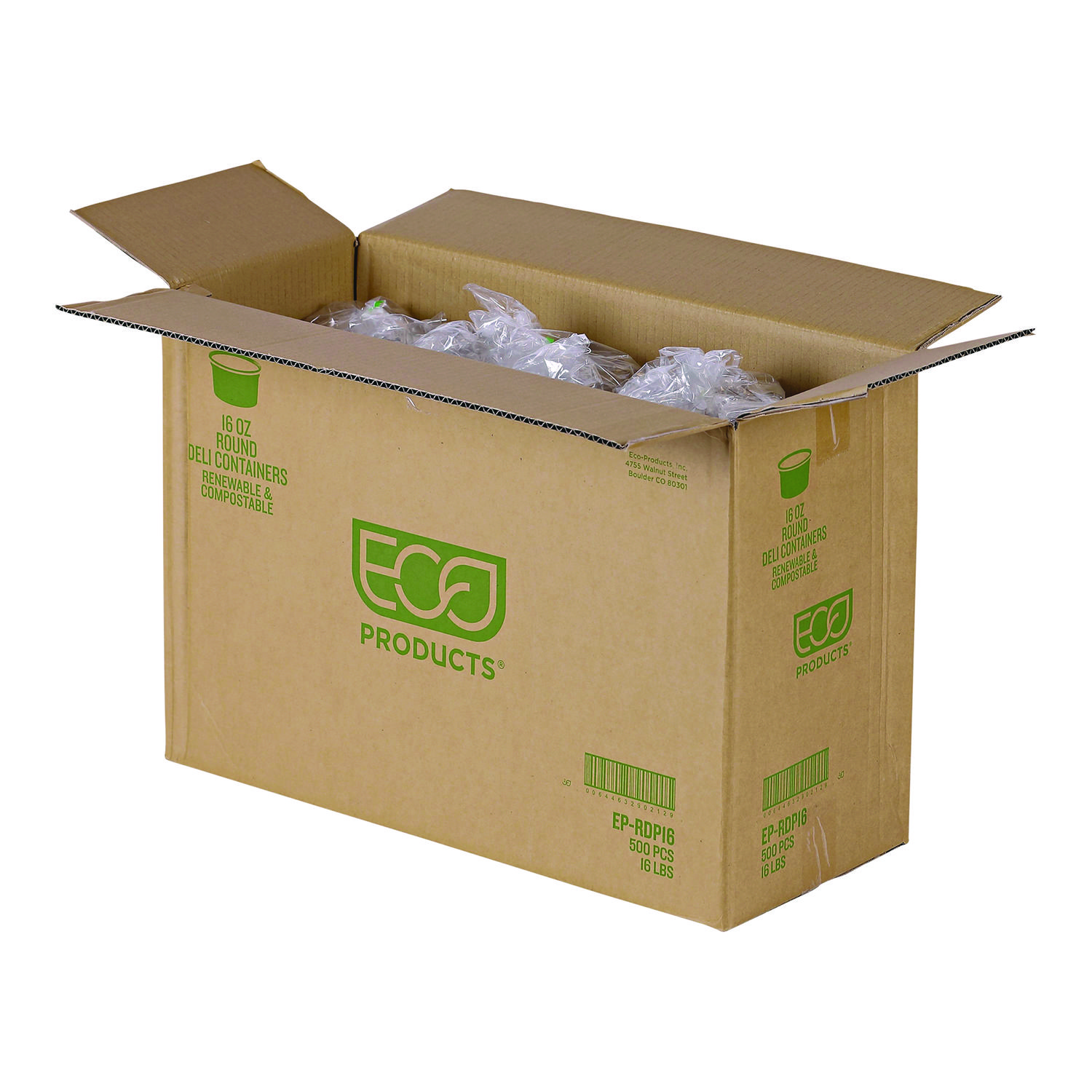 Renewable and Compostable Round Deli Containers, 16 oz, 4.63″ Diameter x 3.06″ h, Clear, Plastic, 50/Pack, 10 Packs/Carton
