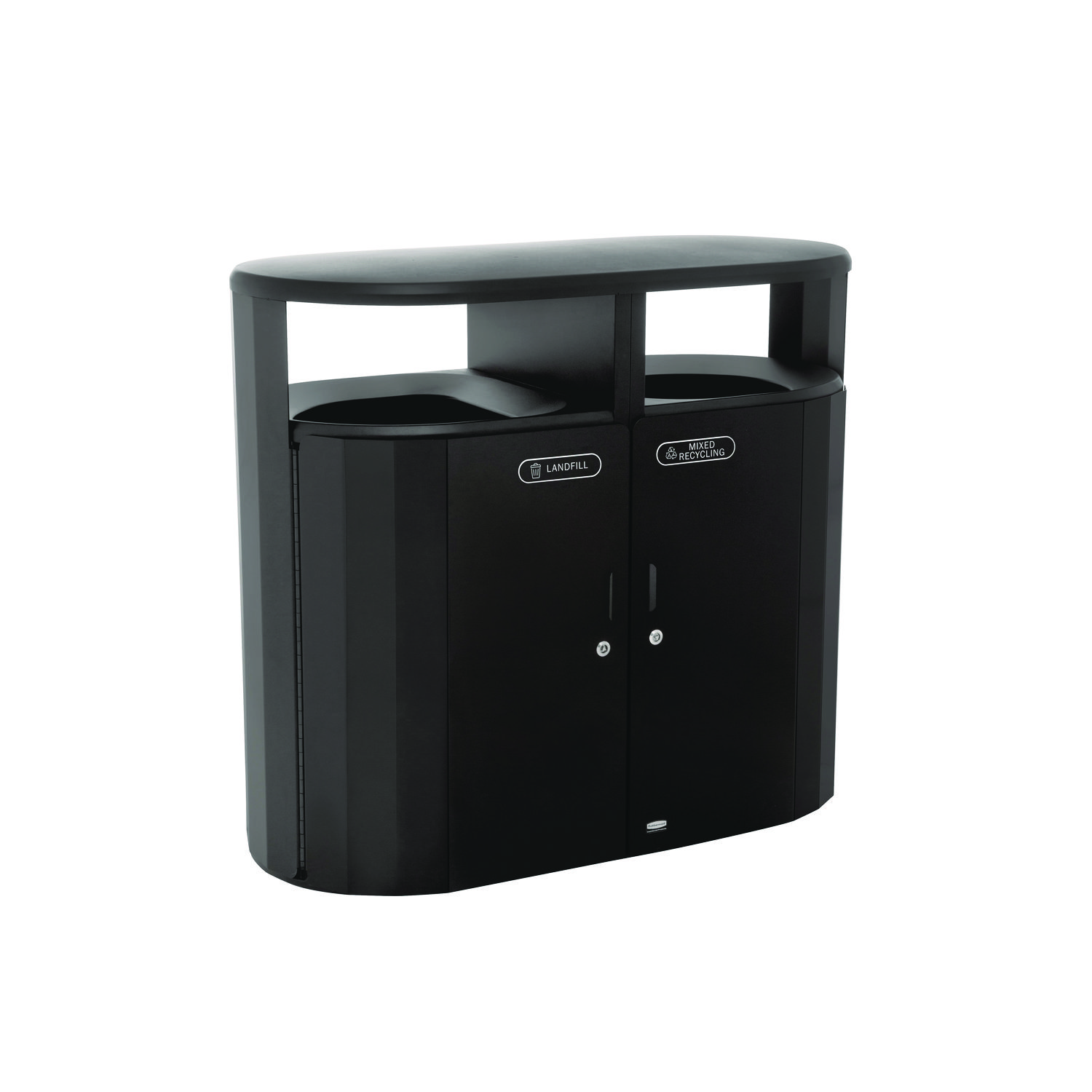 RESIST Dual Stream Waste and Recycling Container, 66 gal, Metal, Textured Black/Black Gloss