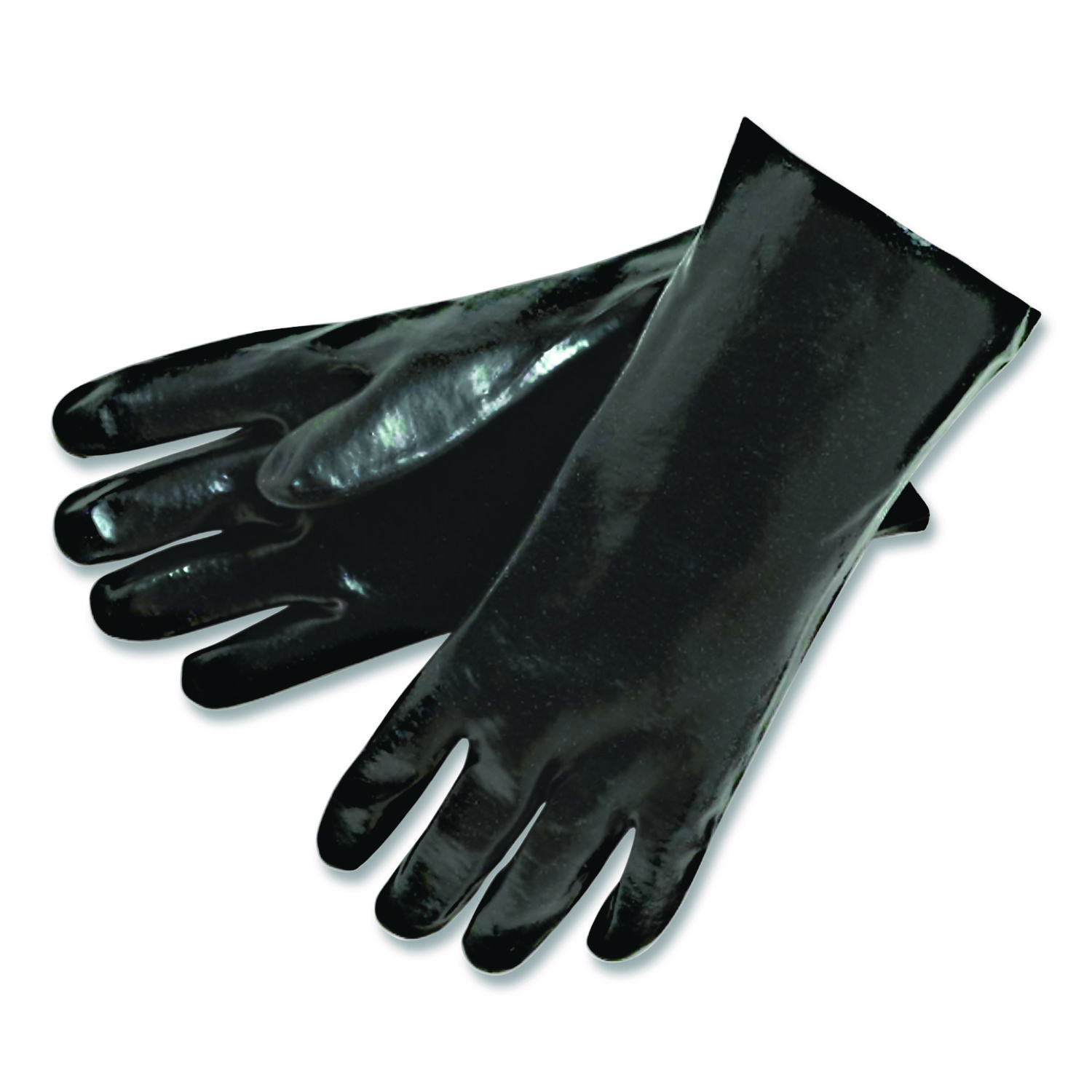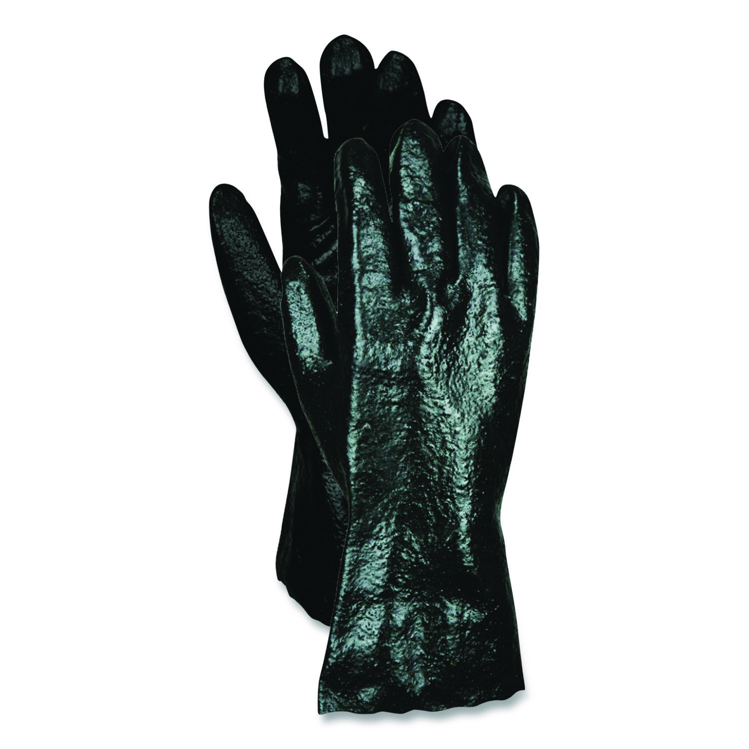 Rough Finish Single Dipped PVC Gloves, 12″ Long, Large, Black, 12 Pairs