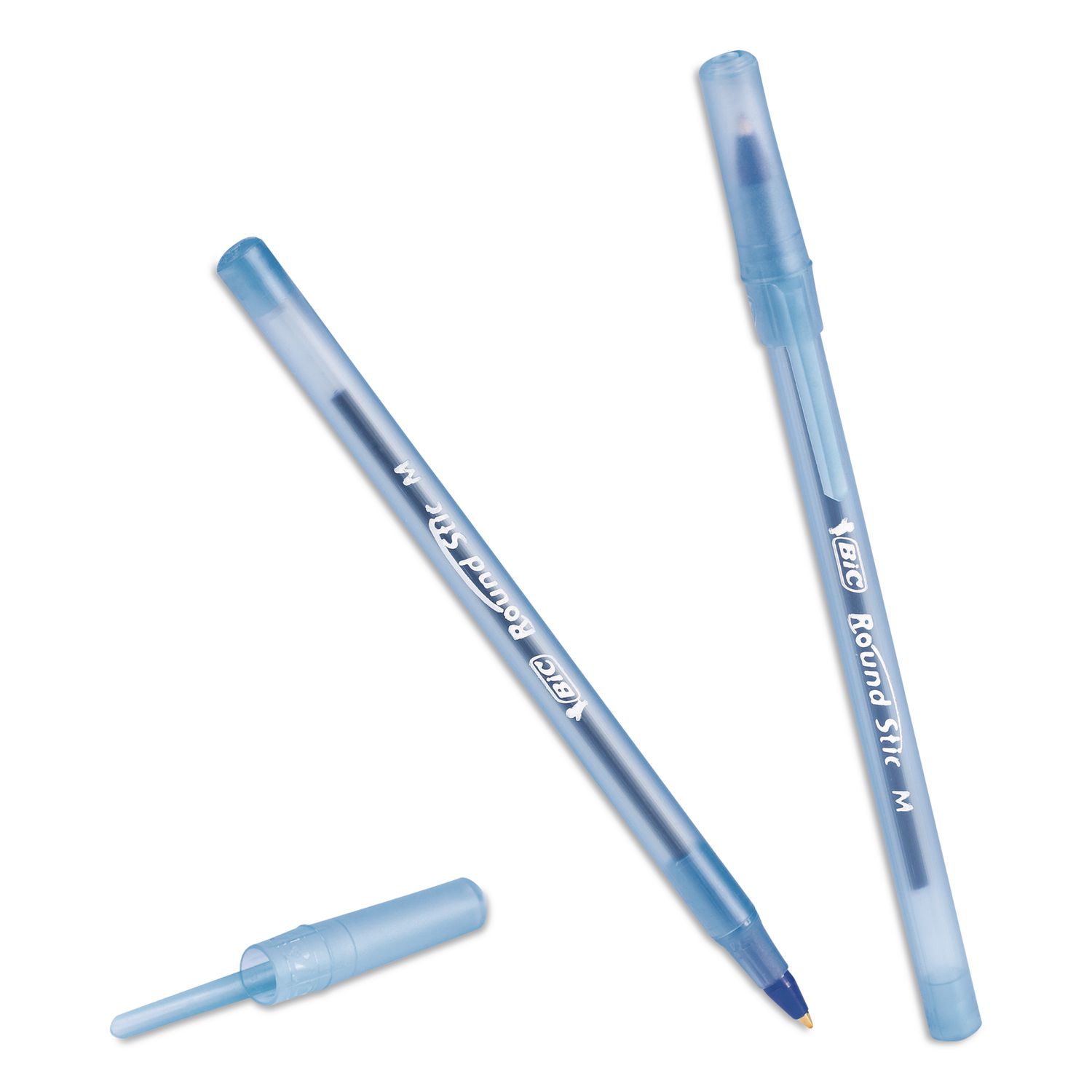 Round Stic Xtra Life Ballpoint Pen, Stick, Medium 1 mm, Blue Ink, Translucent Blue Barrel, 12/Box, 36 Boxes/Carton