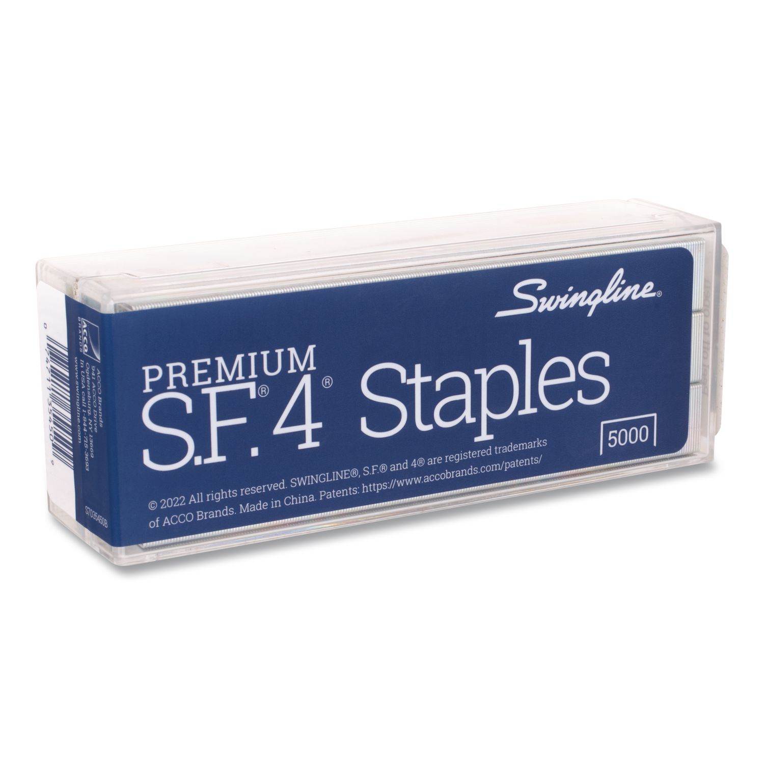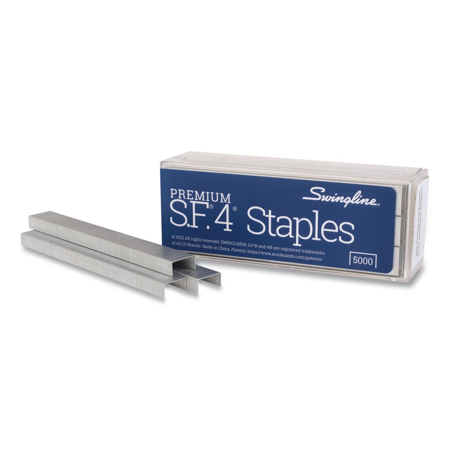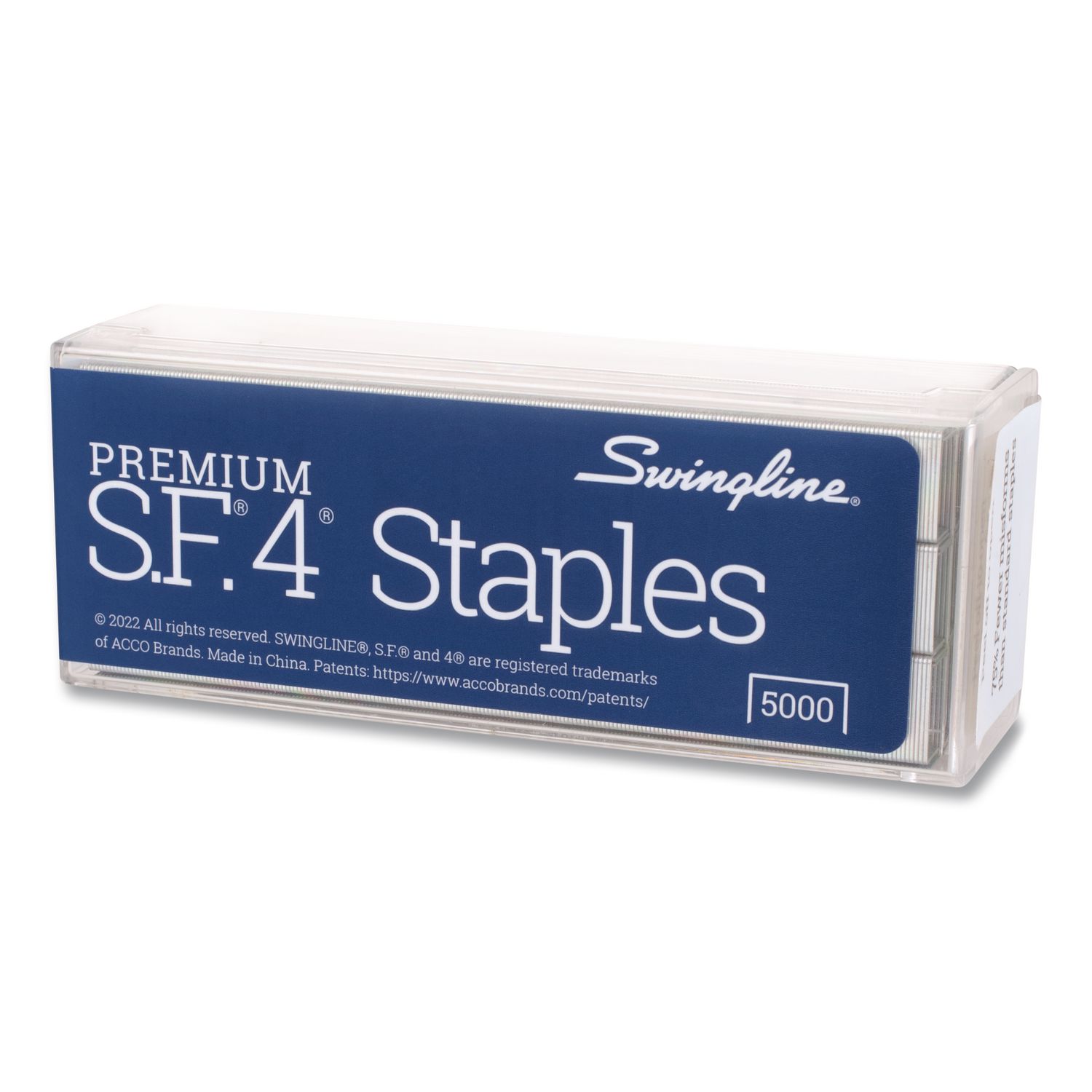 Swingline S.F. 4 Premium Staples are the smart choice for your standard size stapler. These staples are engineered to easily pierce paper and staple without jamming for frustration-free stapling every time. Swingline S.F.4 Premium Staples are designed to deliver high performance stapling with most standard size staplers. Precision engineered chisel point reduces the risk of frustrating jams and effortlessly pierces through papers. Proven to have 75% fewer misforms than comparable staples for worry-free stapling. Standard 0.25″ leg length is ideal for most staple jobs Each strip of 210 staples perfectly fits a full size stapler. Use with our most popular models including the Swingline 747. One box contains 5,000 staples and is reusable to keep staples neatly stored. Staple Collation: Full-Strip; Staples per Strip/Cartridge: 210; Sheet Capacity: 25; Leg Length: 0.25″.