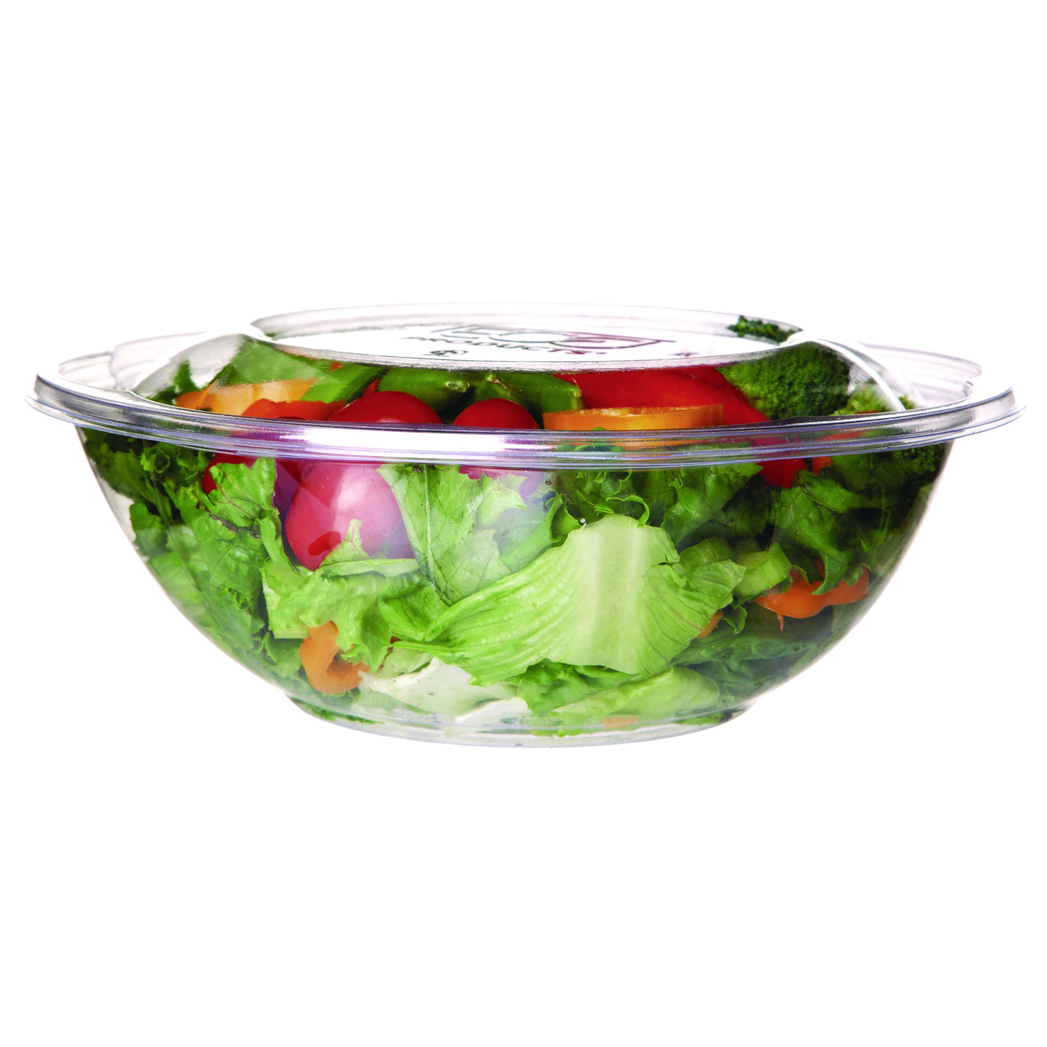 Salad Bowls with Lids, Squat, 64 oz, 9.5″ Diameter x 3.2″ h, Clear, Plastic, 150/Carton