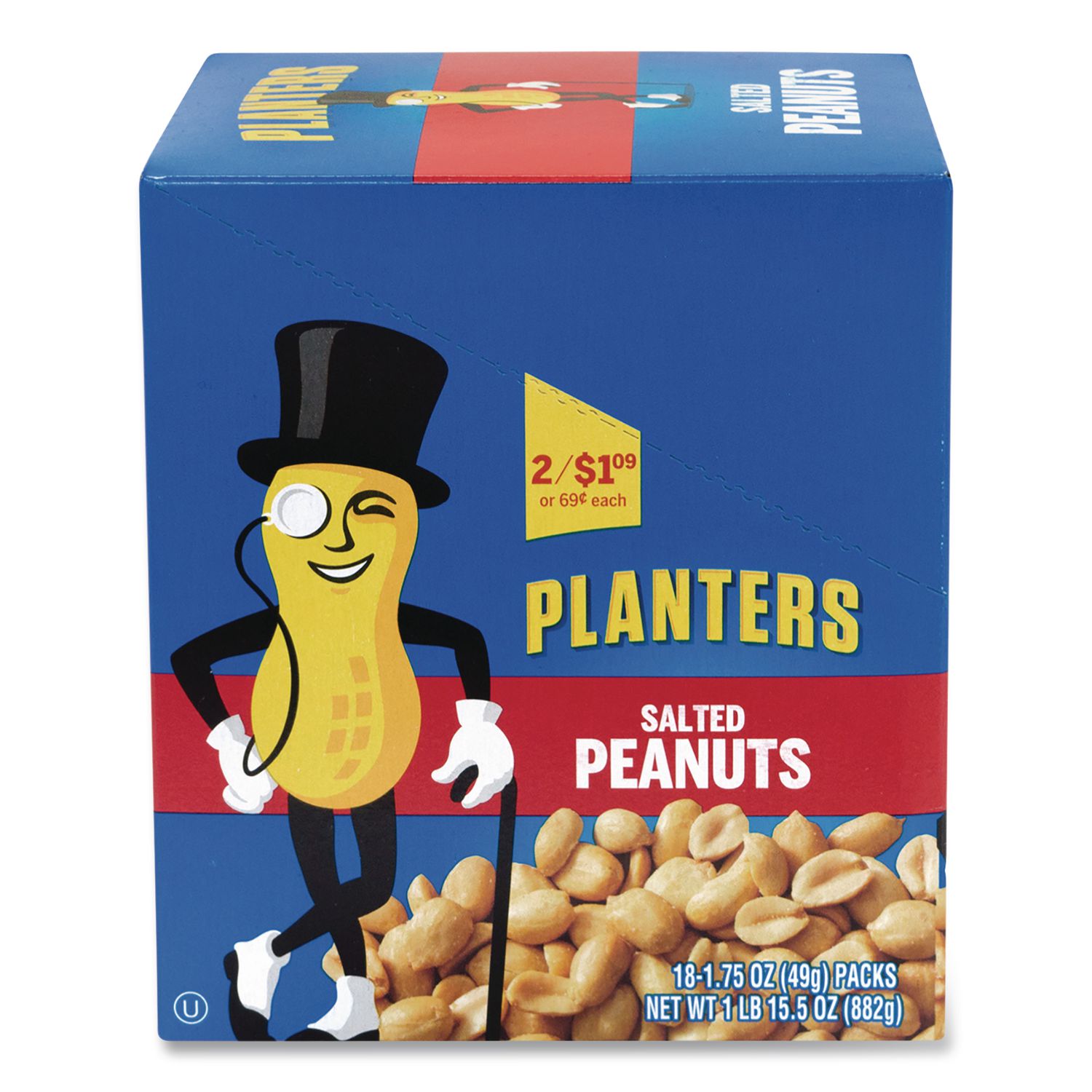 Salted Peanuts, 1.75 oz Pack, 18 Packs/Box