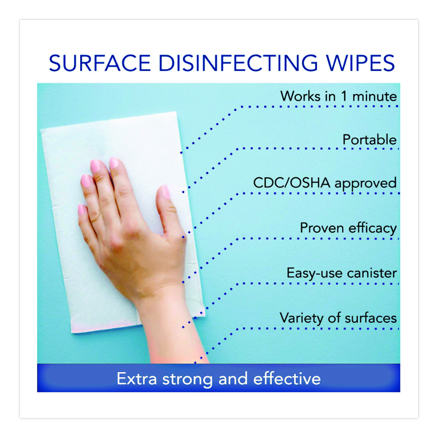 Powered by a next generation proprietary blend of quaternary ammonium, isopropyl alcohol (IPA) and ethanol, this unique combination delivers SPEED—a true one-minute bactericidal, fungicidal, virucidal and tuberculocidal disinfectant with the power to destroy over 50 microorganisms, including Candida auris, SARS-CoV-2 and 17 multi-drug resistant organisms (MDROs) like MRSA, CRE and VRE. Premoistened, ready-to-use germicidal wipes are safe for use on a broad range of health-care equipment and most hard, nonporous surfaces. Extra-Large Wipes. Towel/Wipe Type: Cleaning/Disinfecting Wipes; Applicable Material: Hard Nonporous Surfaces; Medical Equipment; Number of Plies: 1; Color(s): White.