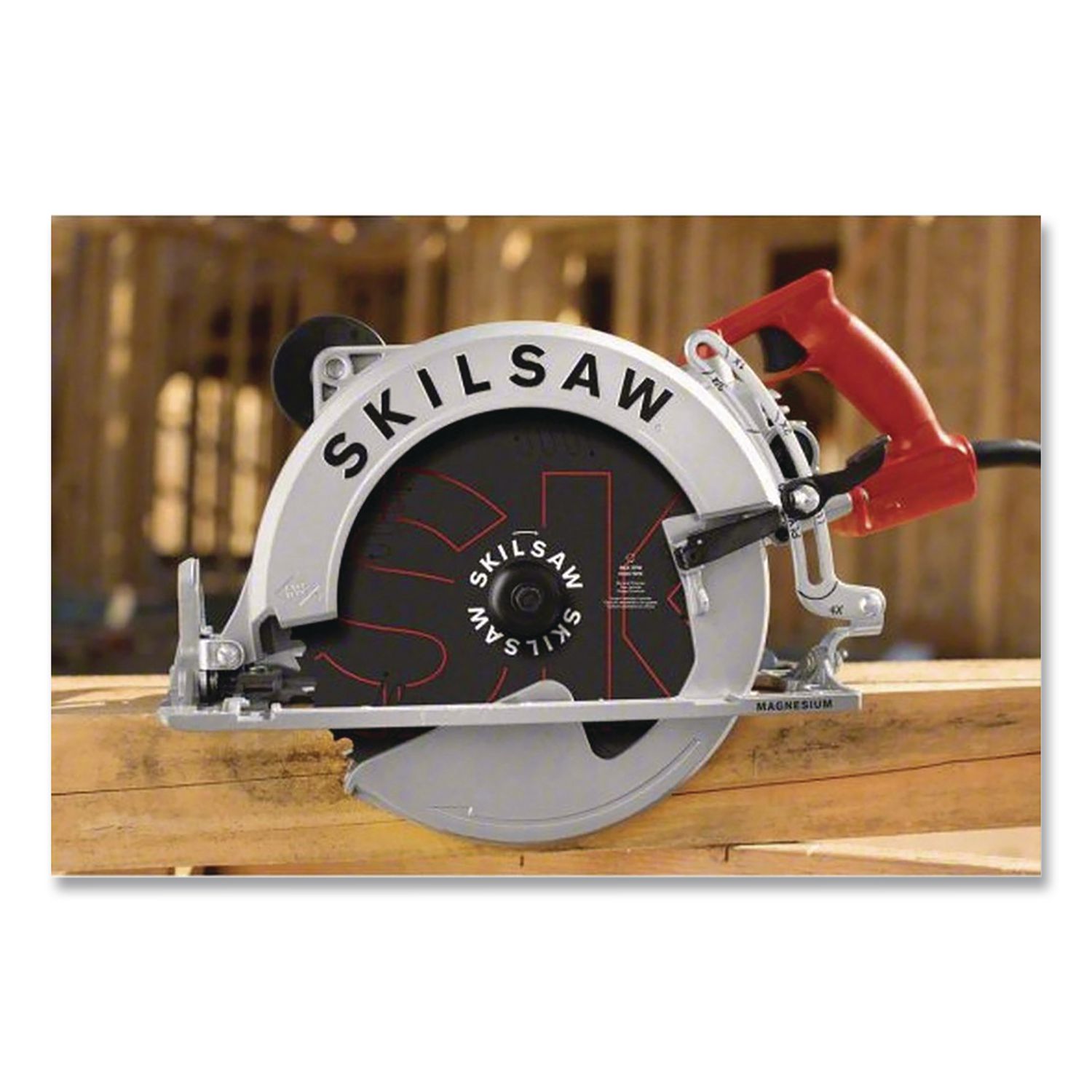 The New Boss of Big Cuts Has Arrived. Meet the Sawsquatch 15 Amp 10-1/4 in Magnesium Worm Drive Circular Saw designed specifically to cut 4x on all types of material in one pass. Precision and balance are crafted into the design, so you will knock out big cuts quickly and cleanly time after time. With magnesium construction, brass worm drive gearing, and a Dual-Field™ motor designed precisely for cutting, this saw is engineered to be relentless. With an added Diablo carbide blade, you can rest assured that you are cutting true from day one. Saw Type: Circular; Applicable Material: Glulam; LVL; Pine; PSL Wood; Blade Length: 10.25″; Power: 15 A.