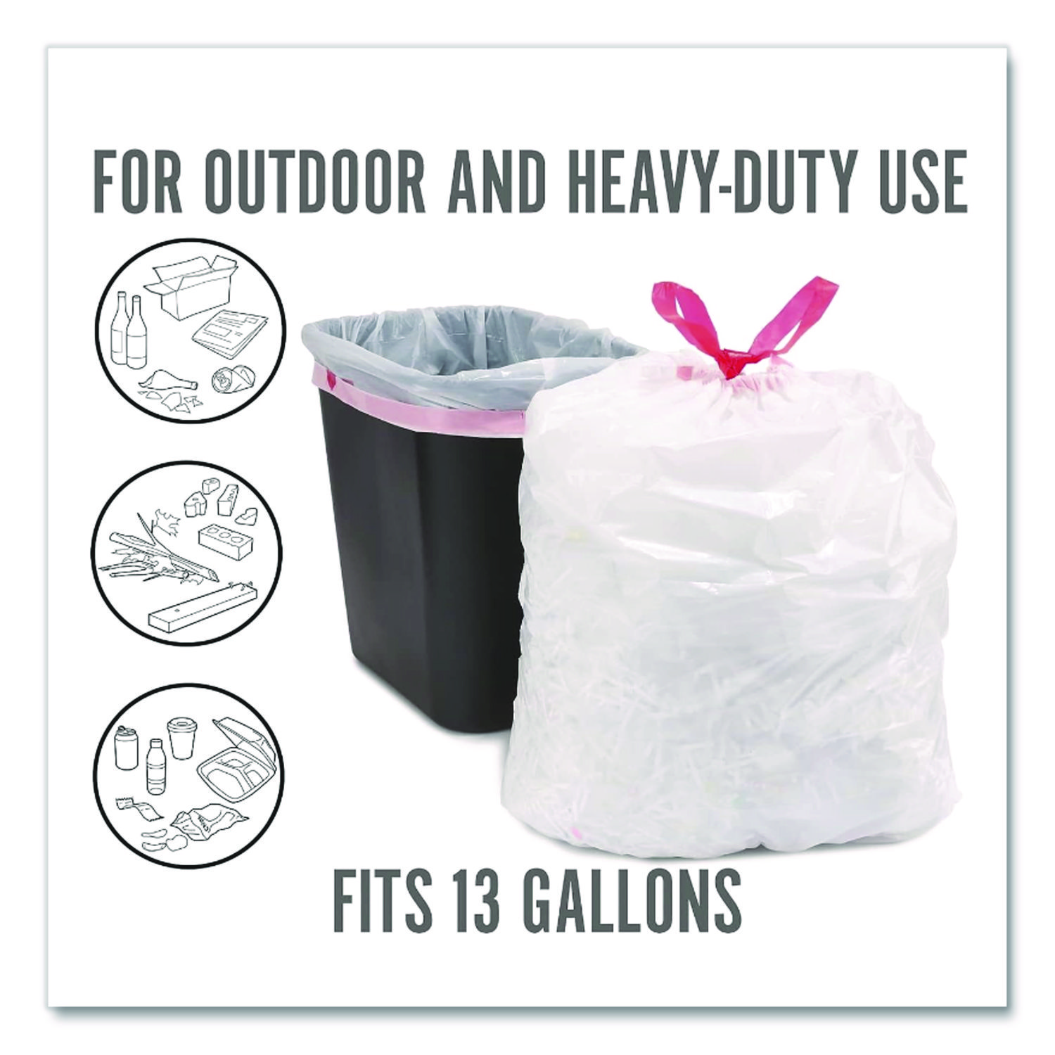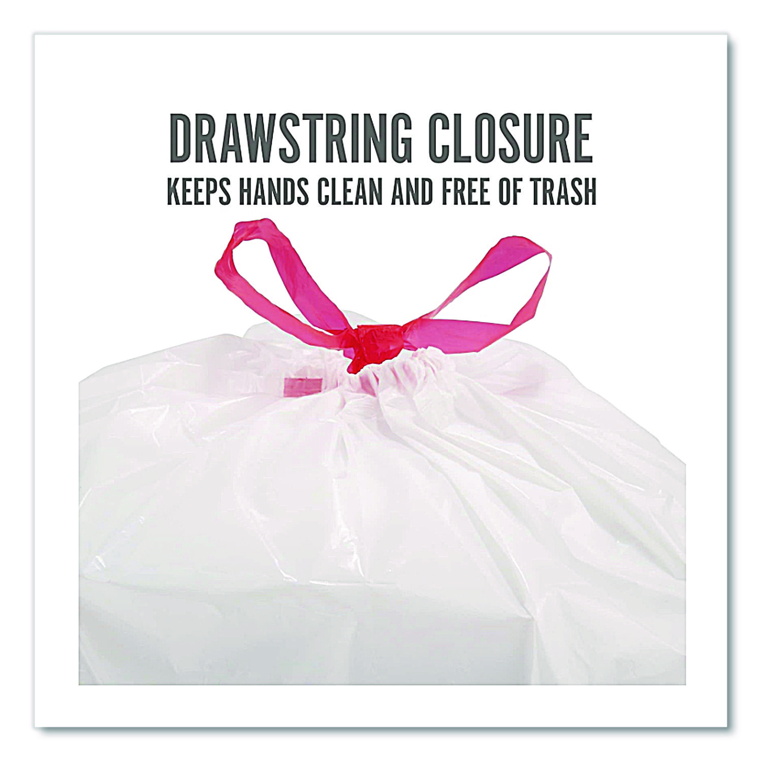 Scented Drawstring Tall Kitchen Trash Bags, 13 gal, Fresh Scent, 28″ x 24″, White, 100/Box