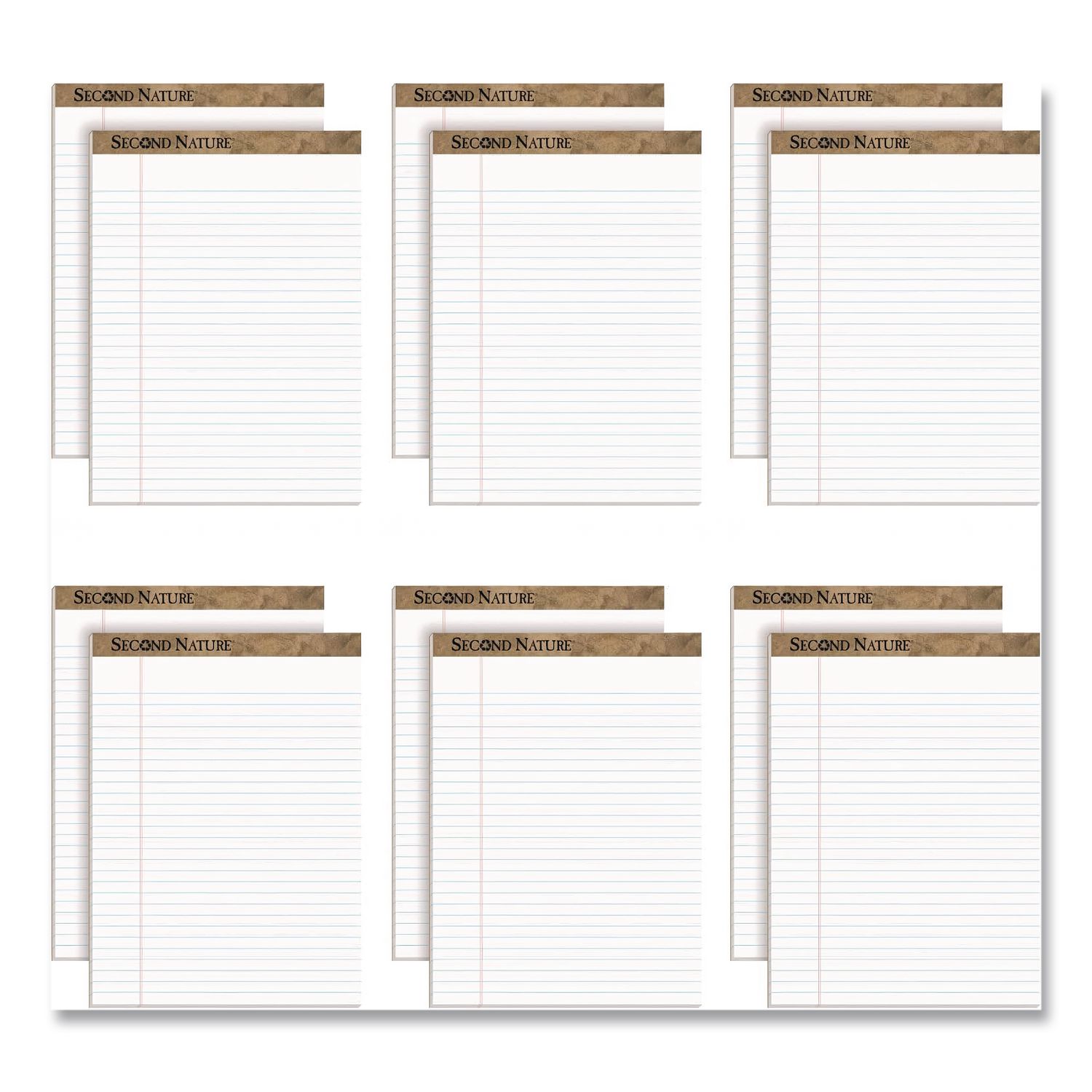 Second Nature Recycled Ruled Pads, Wide/Legal Rule, (50) White 8.5 x 11 Sheets, Dozen