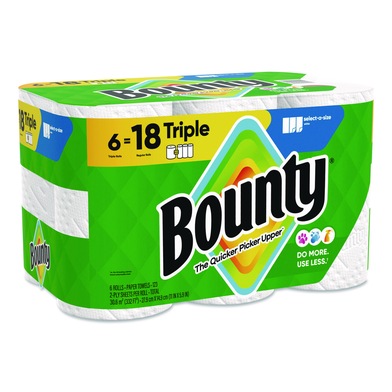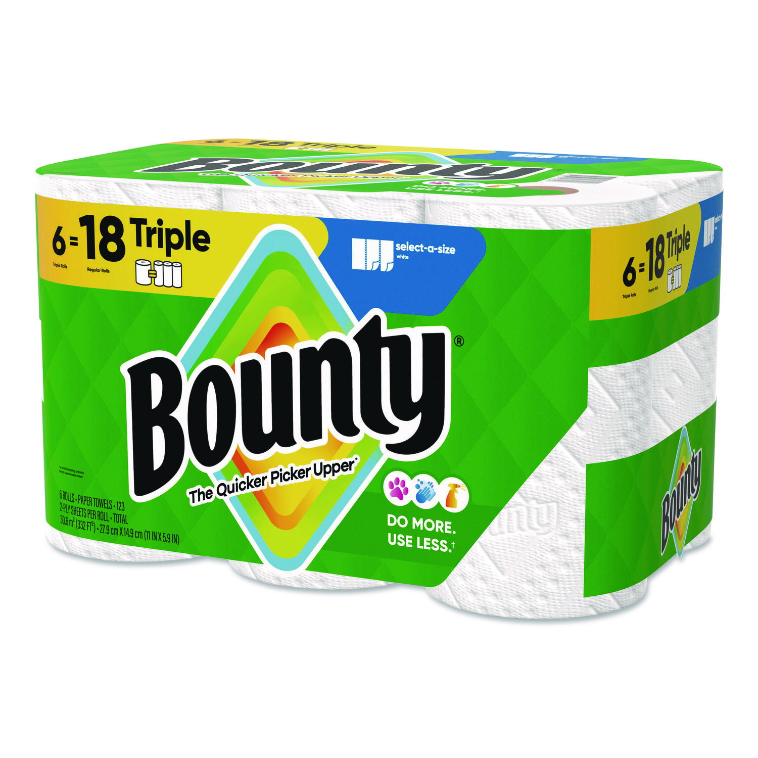 Spilled your drink? Quick! The Quicker Picker Upper. Be ready to tackle messes with Bounty Paper Towels! Each sheet is 2x more absorbent and picks up spills and messes quicker vs. the leading ordinary brand so you can use less. Bounty Select-A-Size towels are versatile, so you can choose your sheet size depending on your mess. Bounty products are proudly made with a commitment to creating solutions for a sustainable future. That’s why for every tree used, at least two are regrown so you can conveniently and confidently clean messes in the kitchen and around the house. Bounty always has your back in and out of the kitchen so whether it’s juice on the counter or ice cream on the table, we make sure spills won’t stand a chance. Towel/Wipe Type: Perforated Household Roll Towels; Fold Types: Household Roll Towel; Applicable Material: Glass; Hard Surfaces; Material(s): Paper.
