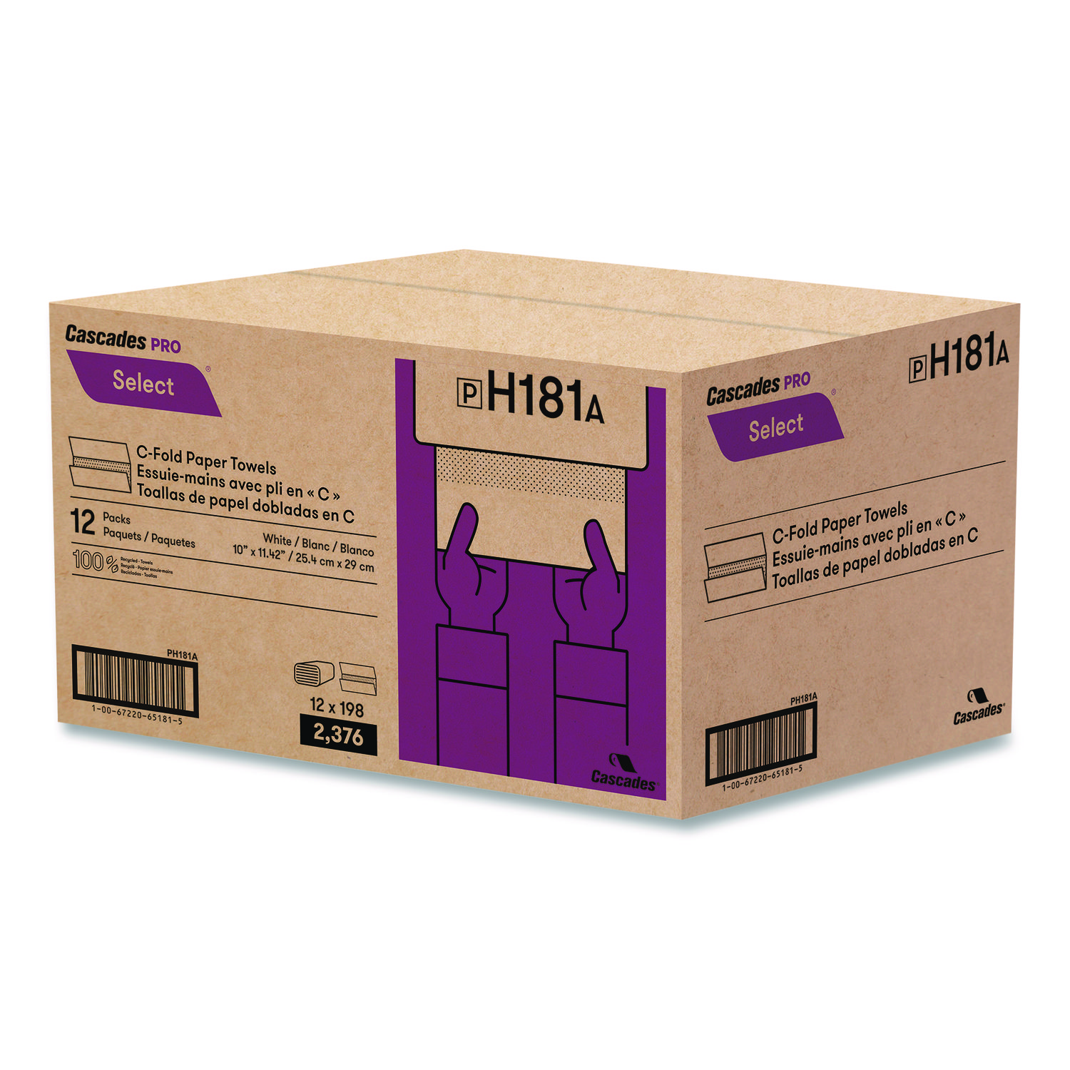 Select Folded Paper Towels, C-Fold Towels, 1-Ply, 3.75 x 10, White, 198 Towels/Pack, 12 Packs/Carton
