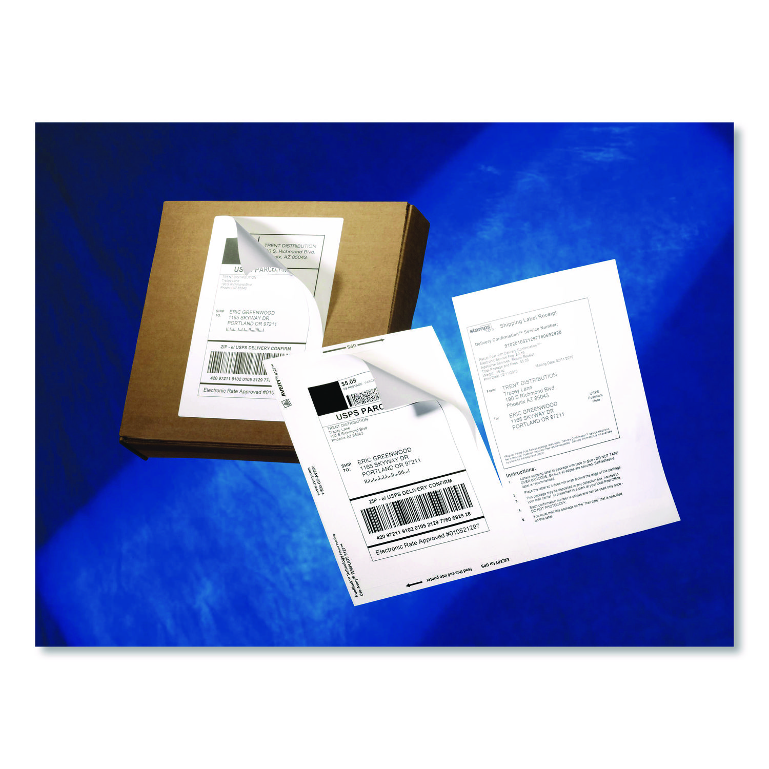 Make sure your packages get where they’re supposed to go without any confusing markings showing through when you use these shipping labels. TrueBlock® Technology completely covers everything underneath. The adhesive sticks to more tough surfaces, ensuring your label doesn’t fall off your package. It’s easy to create custom labels with logos, barcodes and more. Just print your labels right from your own printer. It’s easier than ever to get the job done right. Shipping Labels with Paper Receipts for Inkjet Printers. Shape: Rectangular; Label Size – text: 5.06 x 7.62; Label Color(s): White; Color Family: White.