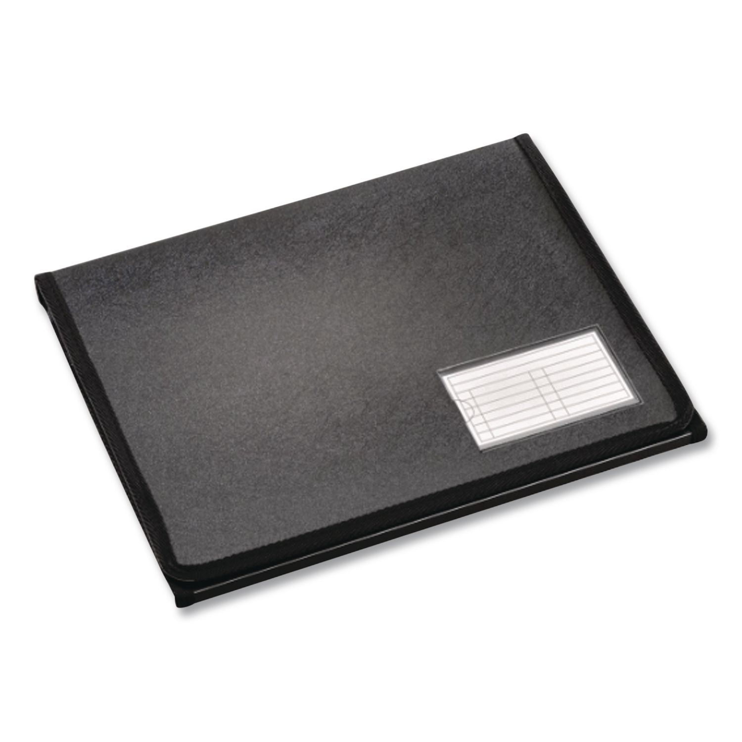 Slim, lightweight and ideal for presentations. Display up to 40 sheets. Hook and loop tabs hold book open for display and closed when not in use. Durable poly cover has business card holder. Horizontal. Number of Sleeves: 20; Front Cover Color(s): Black; Back Cover Color(s): Black; Sheet Size: 11 x 8.5.