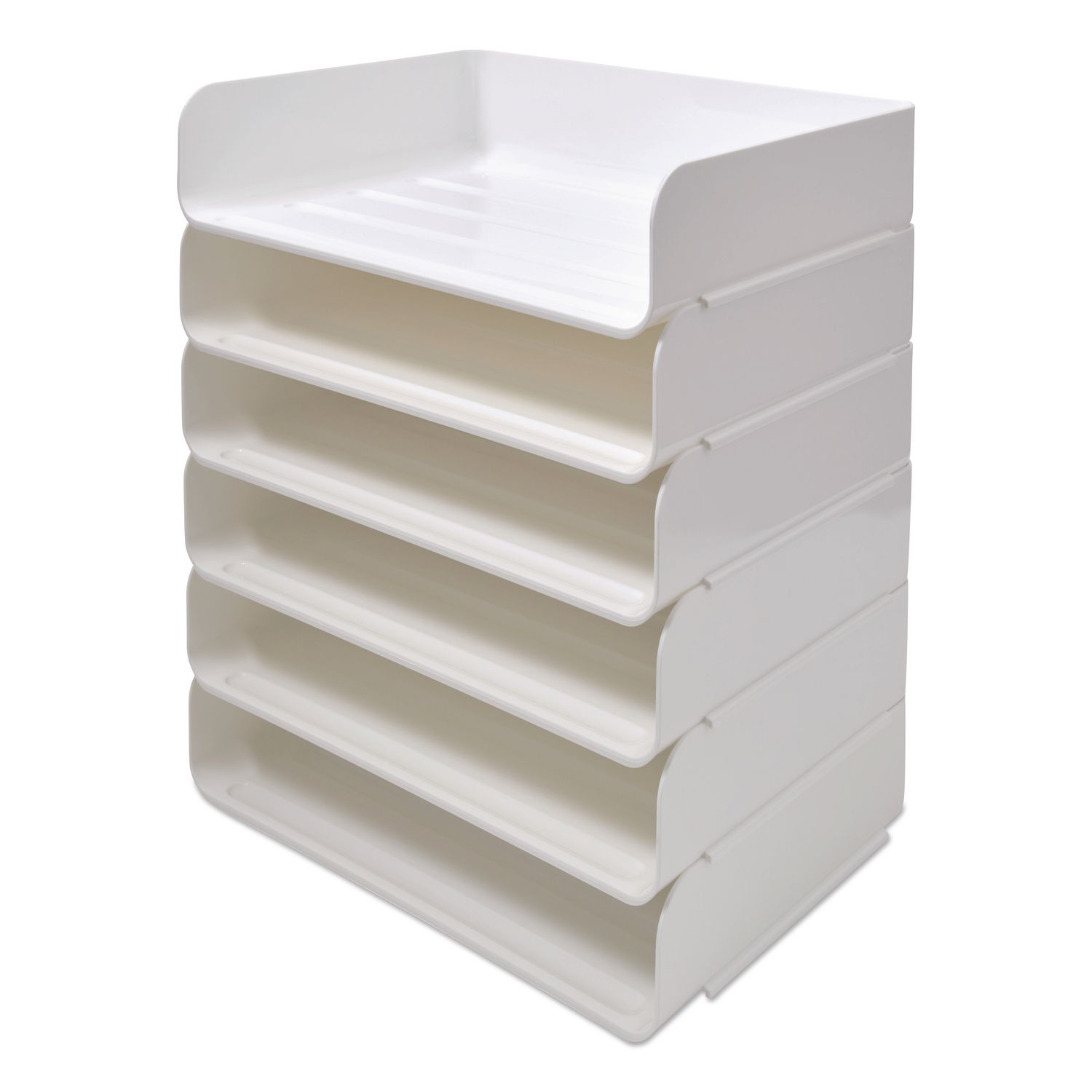 Master the art of desktop organization, and sort all of your paperwork by priority or project to enhance your productivity. Stacking design allows you to develop a personalized desktop setup. Gloss-finished body provides a contemporary appearance that integrates easily into modern office environments. Crack- and break-resistant plastic stands up to the rigors of regular use. Side-Load. Number of Compartments: 1; For File Size: Letter; Load Orientation: Side; Color(s): White.