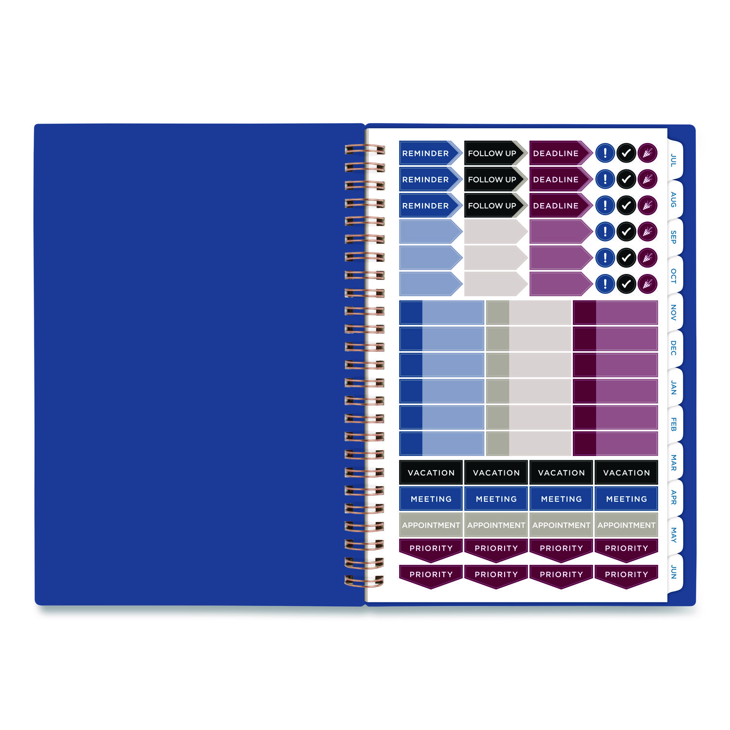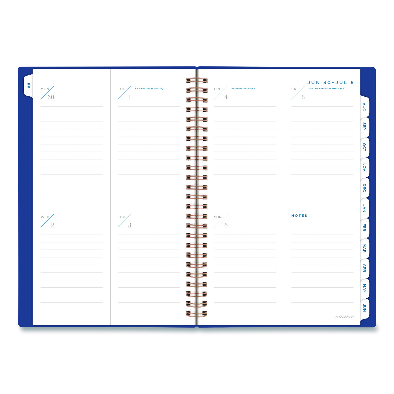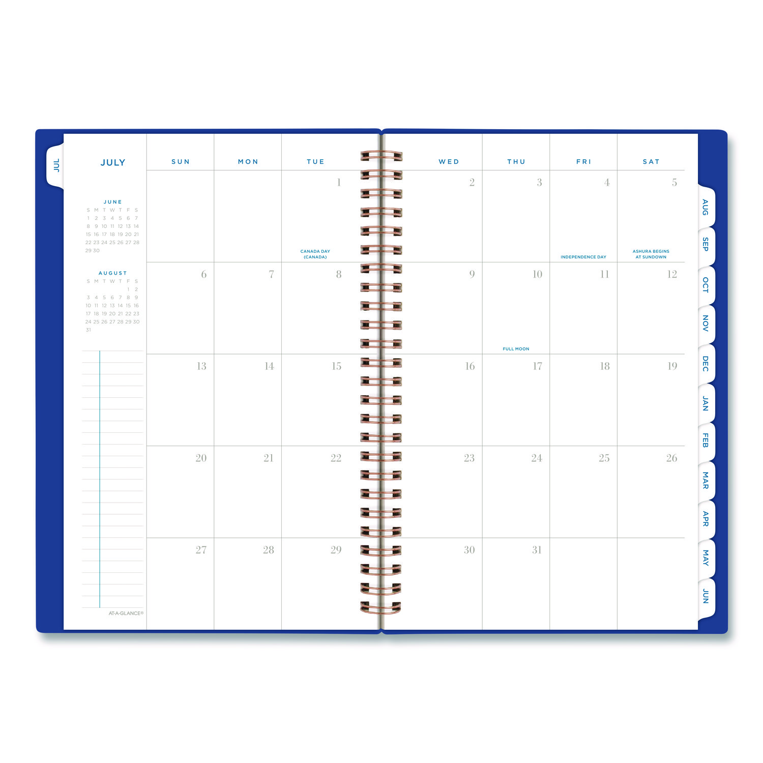 Do it all this year with a planner that covers 12 months from July to June. Modern and simple cover with die cut date badge gives you professional style with a pop of color. High-quality paper features ink bleed resistance to keep your planning pages neat. Prepare for your work week with ruled weekly planning pages, plus space for notes to stay on top of your busy schedule. Tabbed monthly overviews let you look ahead and get a jump on future plans. Your life is more than just a schedule. Special pages help you do it all and include notes and contacts pages, event calendar, holiday list and reference calendar. A planner built for real life. The flexible yet durable cover keeps its shape, while the twin wire binding helps prevent snags when you throw it in your bag. Dated: Yes; Academic Year: Yes; Calendar Format: Weekly/Monthly; Calendar Spread Format: One Week per Two-Page Spread; One Month per Two-Page Spread.