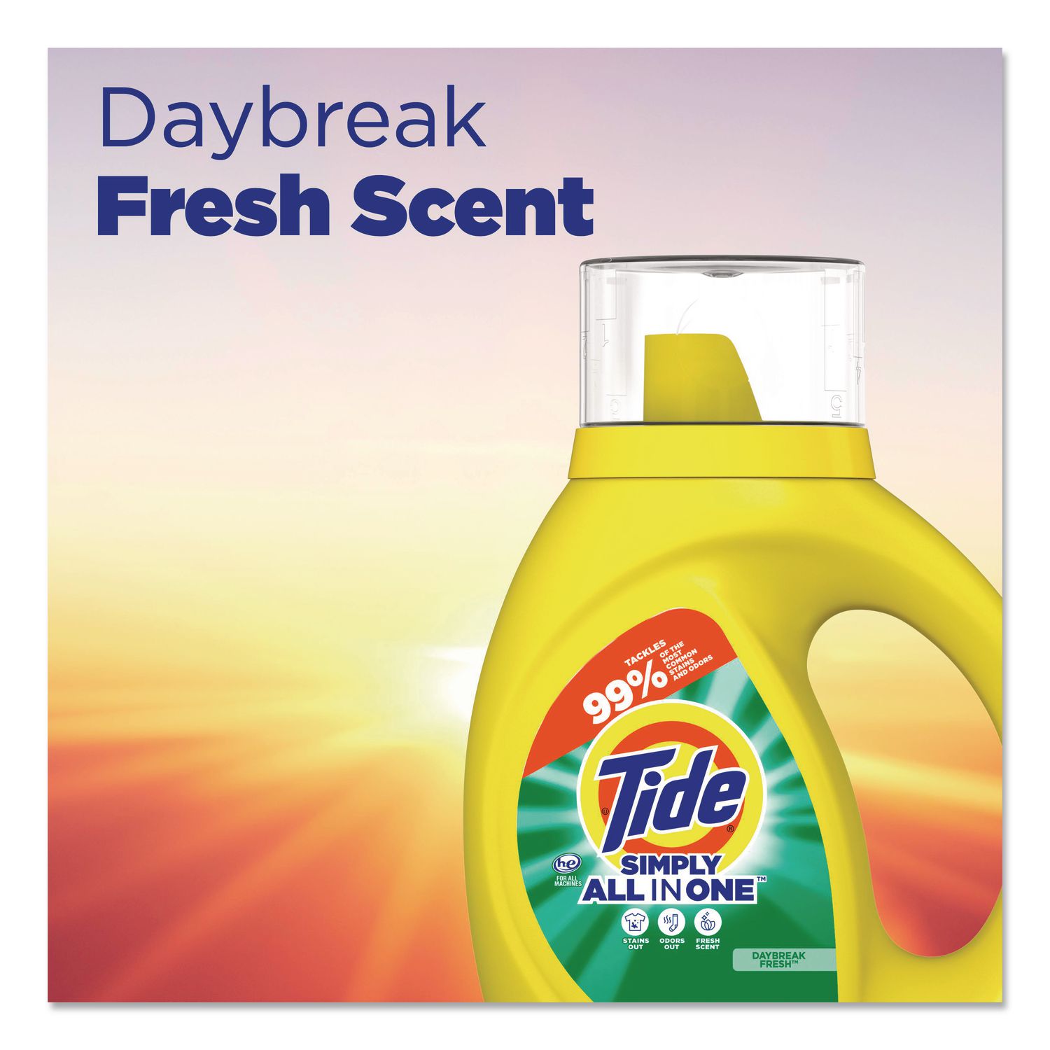 Experience the right clean at just the right price with Tide® Simply All-In-One. Tide® Simply All-In-One Liquid Laundry Detergent fights dirt and tough odors deep in the fibers of your clothes. That means you only need one wash to get the job done. No pretreating necessary! And because it’s part of the Tide® family, you can expect a consistent, quality clean every time you throw a load in the wash. Tough on odors and easy on your wallet, this laundry detergent gives you the clean and fresh results you’re looking for every time you do laundry. Application: HE Laundry Detergent; Applicable Material: Fabric; Chemical Compound: C10-16 Alketh; C10-16 Alkyldimethylamine Oxide; Sodium And MEA C10-16 Alkylbenzenesulfonate; Sodium Cumenesulfonate; Sodium And MEA Citrate; Tetrasodium Glutamate Diacetate; Calcium Formate And/Or Sodium Formate; Ethanolamine; Propylene Glycol And/Or Alcohol; Benzisothiazolinone; Colorants; Fragrances; Water; May Contain Sodium Laureth Sulfate; Dirt Types: Dirt; Stains.