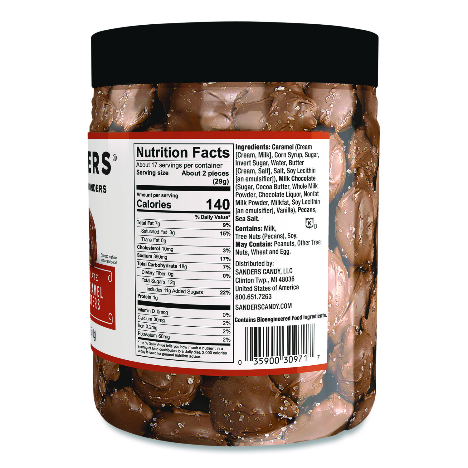 Classic kettle-cooked pecan cluster in the brand’s signature sea salt version. Gourmet treats at your fingertips. No artificial flavors, colors, or preservatives added. Food Type: Caramels; Flavor: Sea Salt Caramel Pecan; Capacity (Weight): 16 oz; Sugar Free: No.