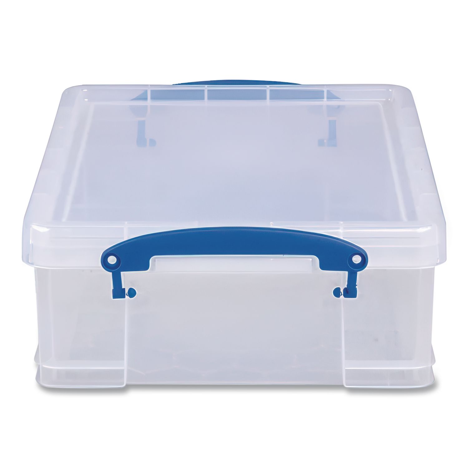 Store files, sports equipment, toys, bedding, decorations, office supplies and more. Made of durable polypropylene, this bin features reinforced sides for enhanced compression strength, so that it maintains its shape when stacked. Flat bottom and recessed, flat lid deliver increased rigidity, while ensuring stacking stability. Snap-tight lock closes with a satisfying, audible snap to let you know that your bin’s lid is properly fit. Clear body allows you to check your bin’s contents with having to open it. Number of Compartments: 1; Capacity (Volume): 2.14 gal; Maximum Volume Range: 1 to 5 gal; Material(s): Plastic.