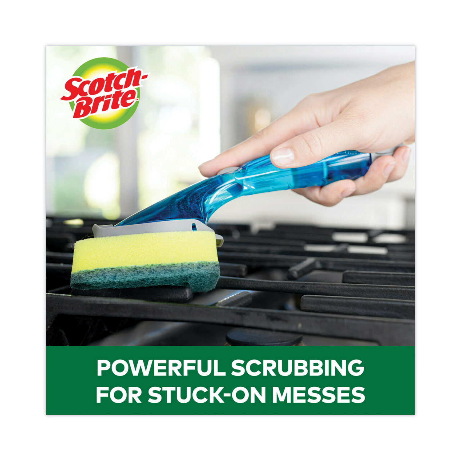 Heavy-duty dishwand keeps hands out of the mess! Tough scrubbing head tackles your pots and pans. Teardrop-shaped scouring pad gets into corners, nooks and crannies. Simply replace the head when it’s worn out. Replacement sponge heads sold separately. Scouring Pads/Sticks Type: Dishwand; Material(s): Plastic; Synthetic Fiber; Urethane; Size (W x L): 2.5″ x 9.5″; Color(s): Yellow/Green.