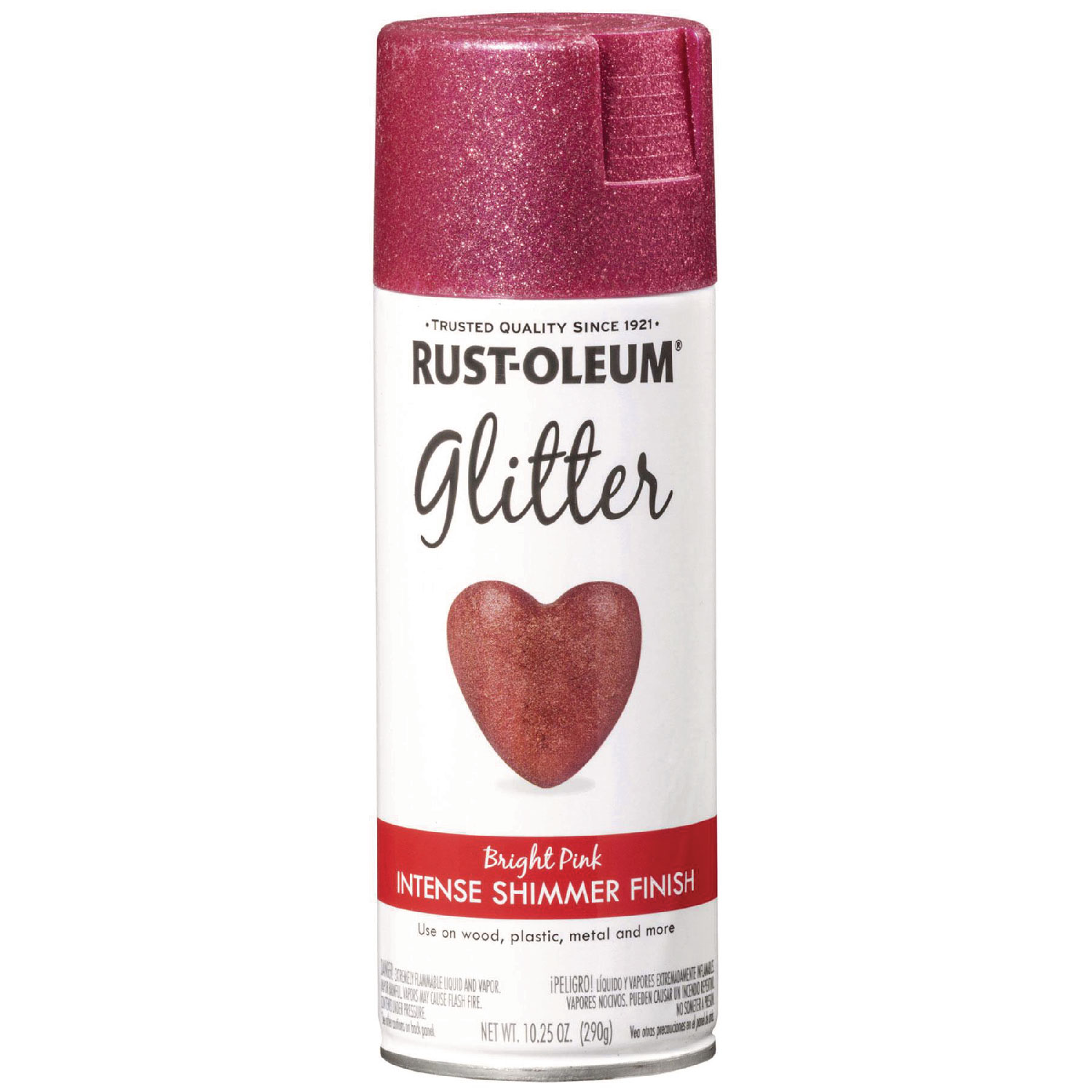 Rust-Oleum Specialty Glitter Spray provides an intense sparkling finish for any interior craft or decorative project. Unique glitter paint can be layered for a deeper effect and enhanced radiant shimmer. Glitter Spray Paint works on a variety of surfaces to add a pop of color for any special event or gathering. Apply over a similar color base coat for maximum sparkle and full coverage. Paint Sub-Category: Specialty; Spray Paint; Intended Application Environment: Interior; Finish/Sheen: Glitter; Color(s): Pink.