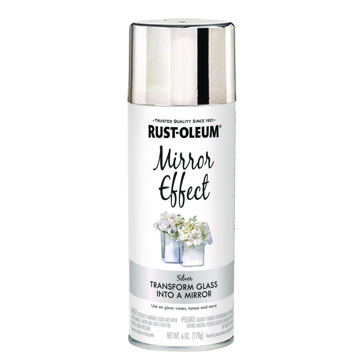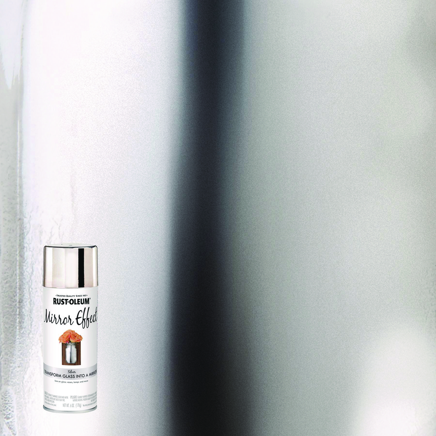 Rust-Oleum Specialty Mirror Effect Spray makes it easy to transform glass and acrylic glass into a reflective mirror-like surface. Unique, slender can allows for easy handling. Simple, one-step application dries quickly right before your eyes and provides superior durability. Paint Sub-Category: Spray Paint; Intended Application Environment: Interior; Finish/Sheen: High Gloss; Color(s): Mirror.