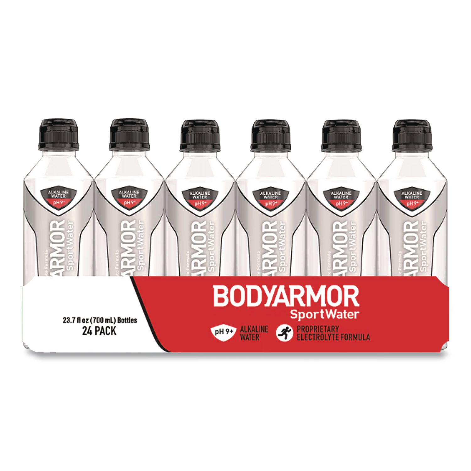 BodyArmor SportWater is a premium sport water created for those with an active lifestyle with a performance pH 9+ and electrolytes for sport. Packaged in bottles with twist-off caps. Contains reverse osmosis water, potassium bicarbonate, calcium chloride and magnesium chloride. Beverage Type: Sports Drink; Product Packaging: Bottle; Volume Capacity: 23.67 oz; Quantity: 24/Pack.