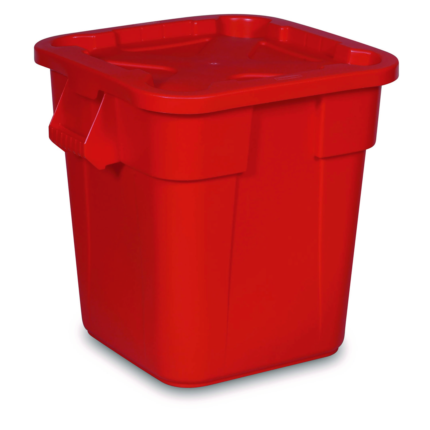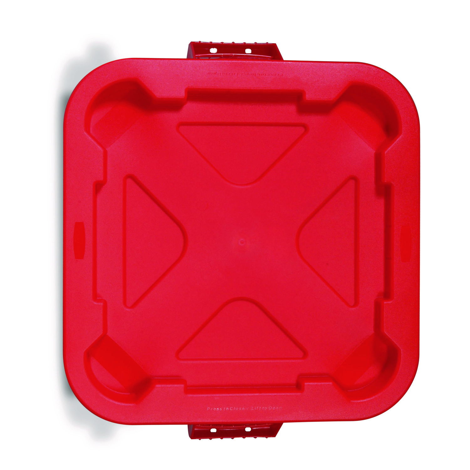 Rubbermaid® Commercial BRUTE® square container lids reduce pooling when containers are stored outside. The heavy-duty, durable trash can lids snap on for secure, stable stacking. Lids feature an all plastic, professional-grade construction that resists dents and will not rust, chip, or peel with continuous use. Lid Type: Flat-Top Lid; Material(s): Plastic; Color(s): Red; Color Family: Red.