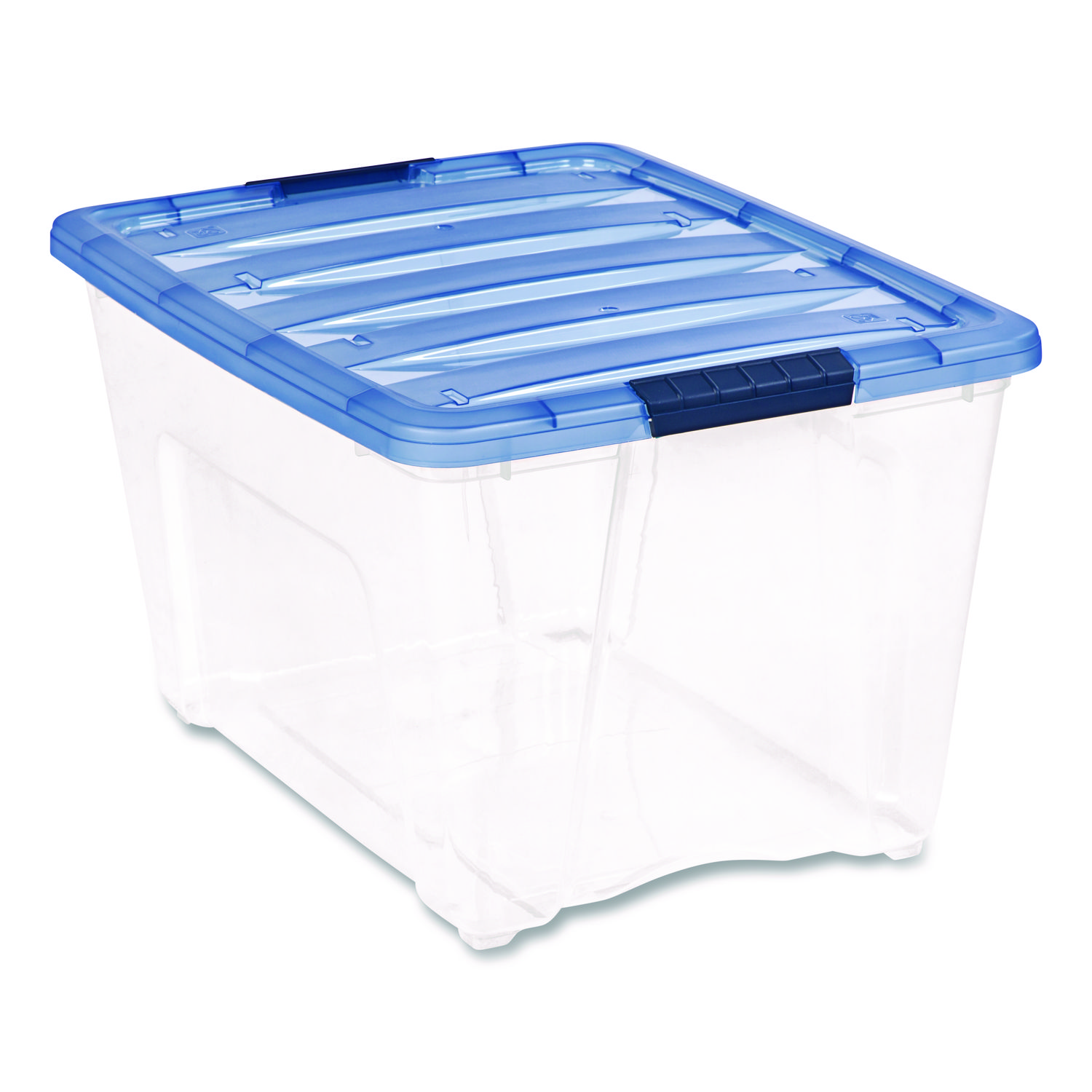 Stack and Pull Latching Flat Lid Storage Box, 13.5 gal, 22″ x 16.5″ x 13.03″, Clear/Translucent Blue