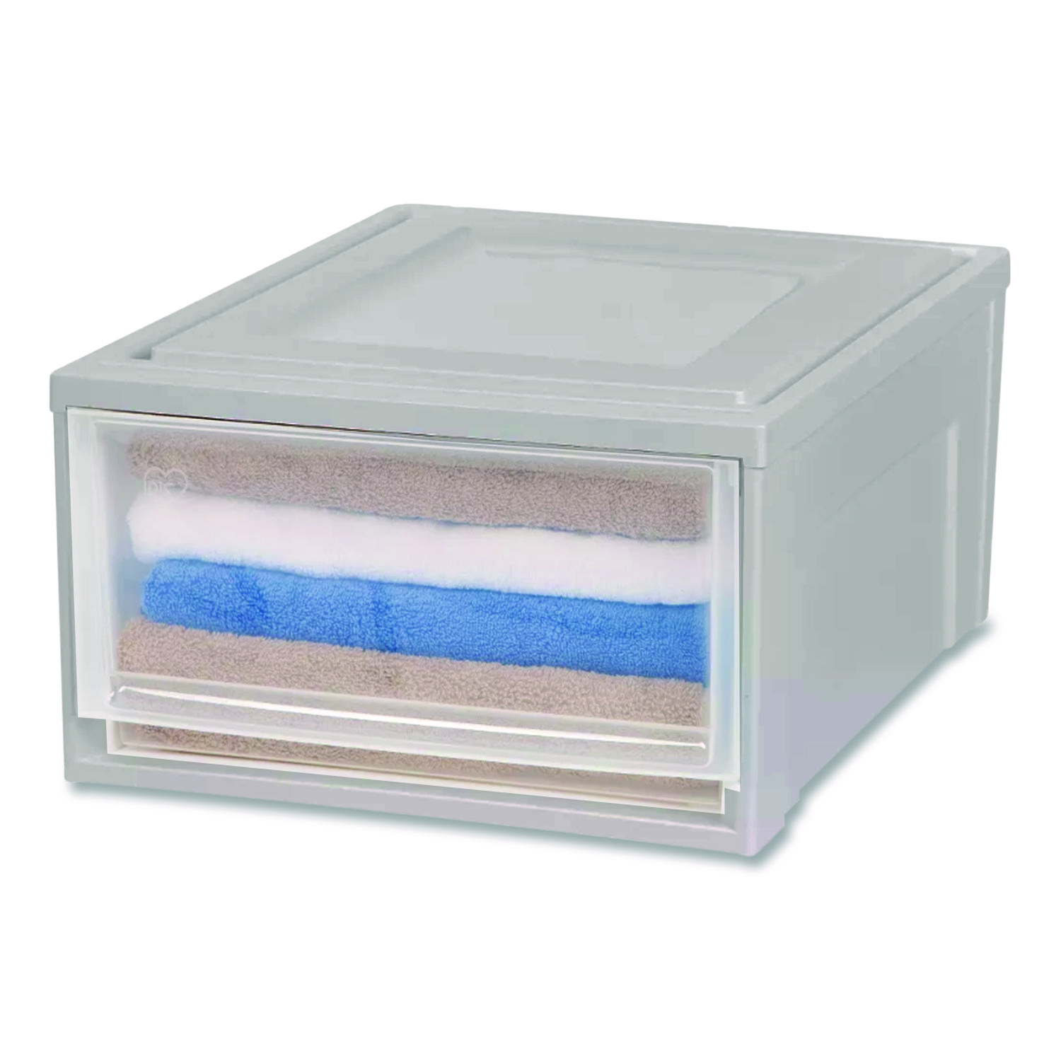 Stackable Storage Drawer, 10.85 gal, 15.75″ x 19.62″ x 11.5″, Gray/Translucent Frost