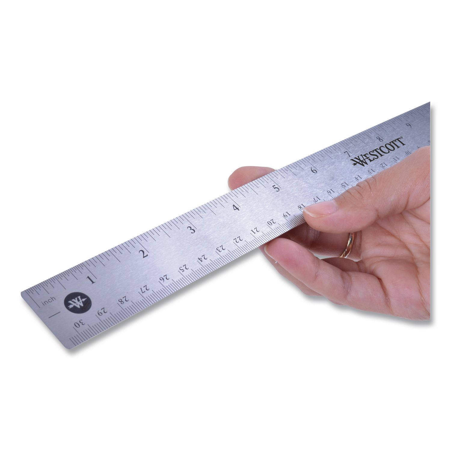 Stainless Steel Office Ruler With Non Slip Cork Base, Standard/Metric, 15″ Long