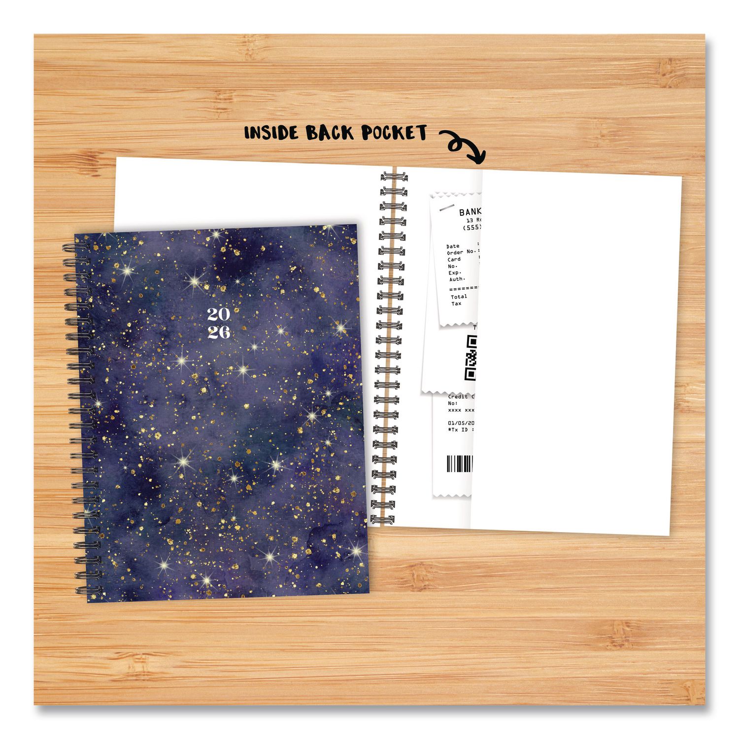 Starry Night Weekly/Monthly Planner, 8.5 x 6.5, Black/Gold Cover, 12-Month (Jan to Dec): 2026
