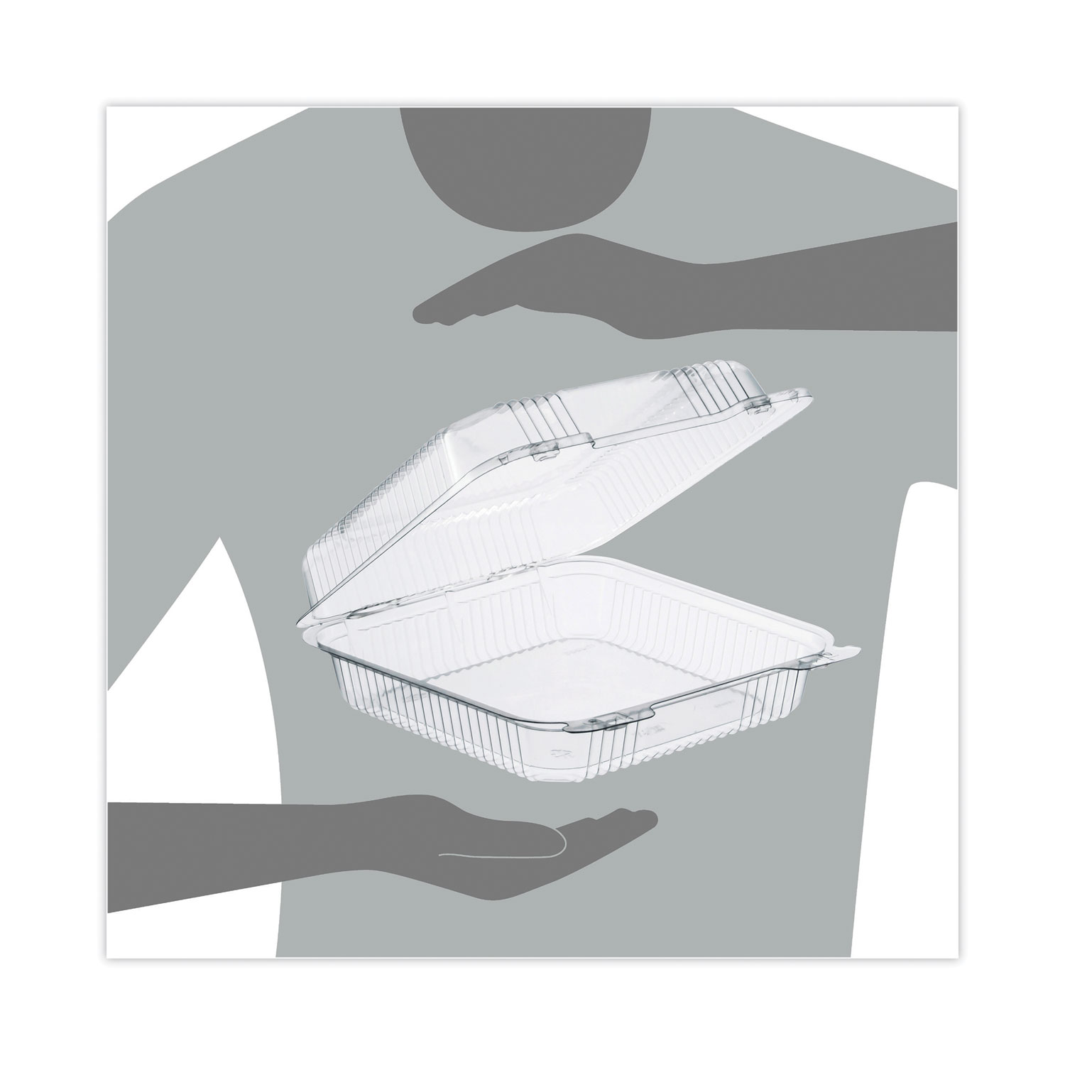 Clear hinged containers offer crystal clarity for excellent product visibility. Dual bar locks ensure a secure closure, even after multiple openings, while sidewall ribbing and chamfered corners increase strength and durability. Lightweight, crush-resistant and stackable. Serve multiple applications. Food Container Type: Hinged Lid Container; Material(s): PET – Polyethylene Terephthalate; Material Type: Plastic; Color(s): Clear.