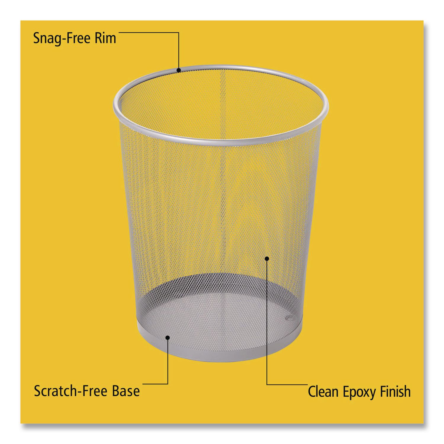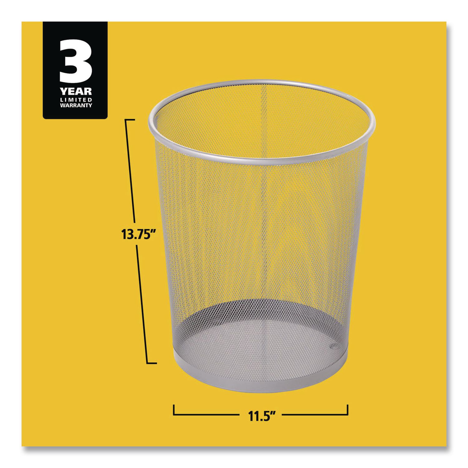 Steel Mesh Wastebasket, 5 gal, Steel Mesh, Silver