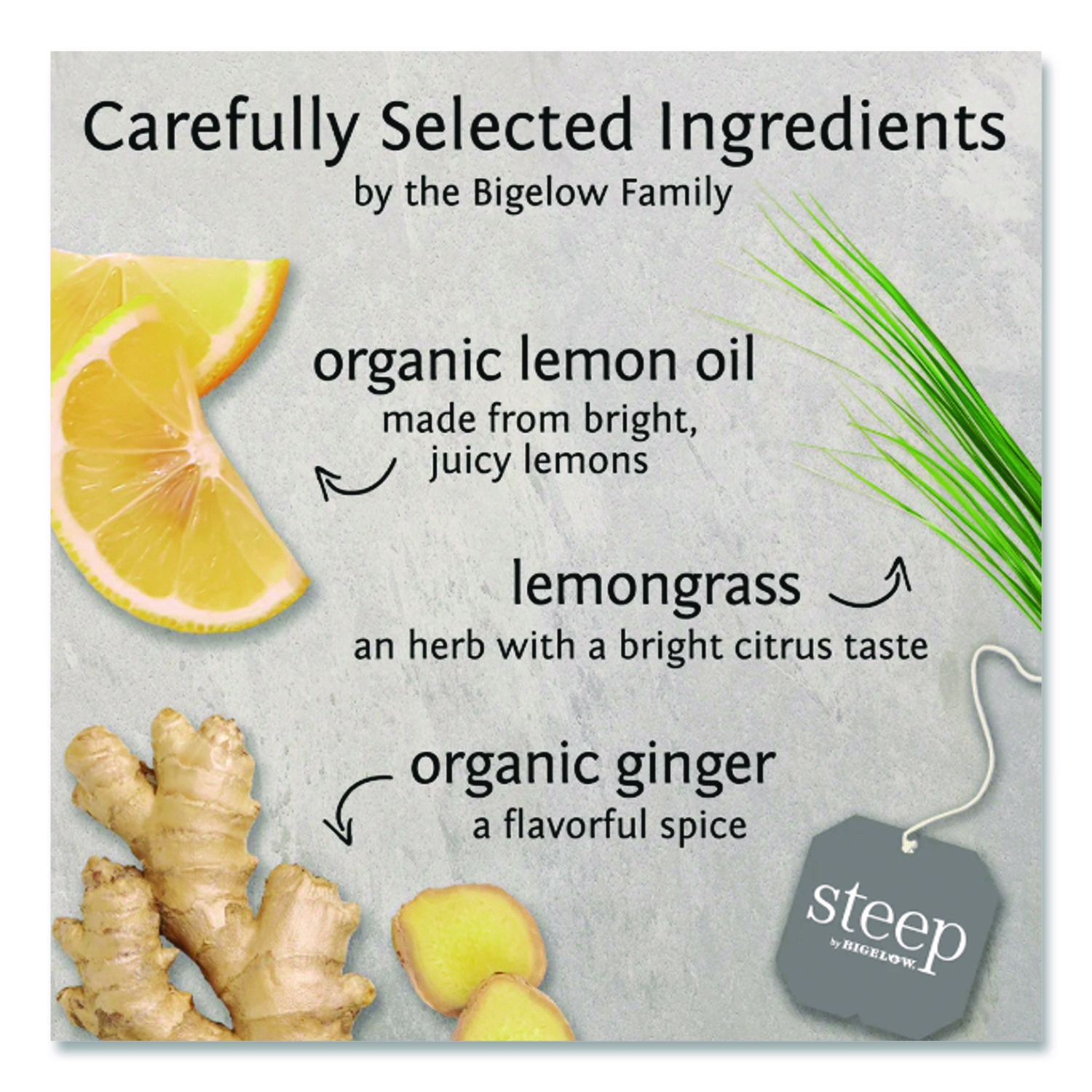 Premium full leaf tea. Conveniently packaged in individually wrapped pyramid bags. Organic, all natural, gluten free, non GMO. Beverage Type: Herbal Tea; Flavor: Lemon Ginger; Product Packaging: Tea Bag; Gluten Free: Yes.